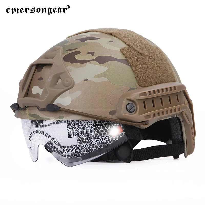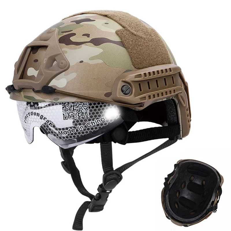 Casco táctico Emersongear con gafas protectoras, gafas de combate, caza, CS, casco antivaho, gafas protectoras He