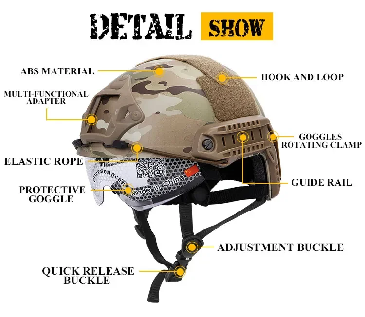 El papel de transferencia importado de los Estados Unidos se utiliza para garantizar la precisión y sin diferencia de color. El casco está equipado con riel de guía de expansión, que es compatible con bloques adaptadores o soportes similares.