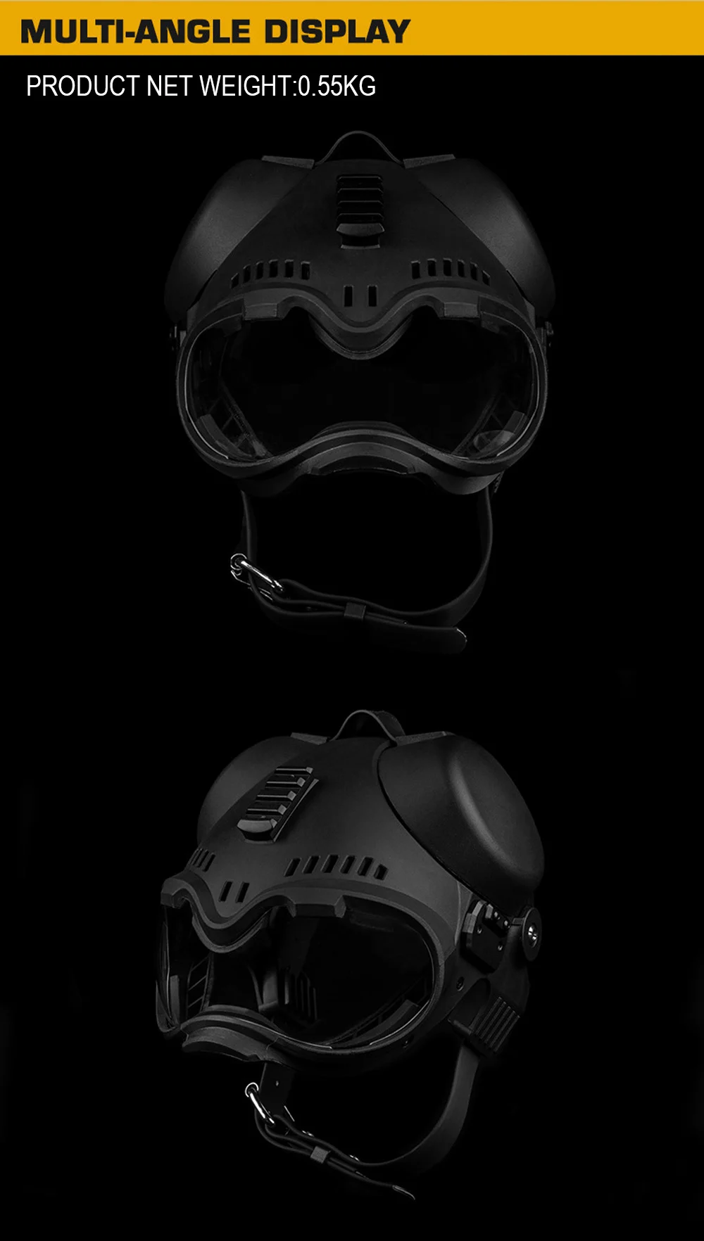 Tenía ganas de probarlo, para algunas sesiones de fotos. De aparente buen plástico, con dos lentes para la gafas. El ajuste es adecuado con la correa y con la espuma adicional, según la morfología de tu perro.