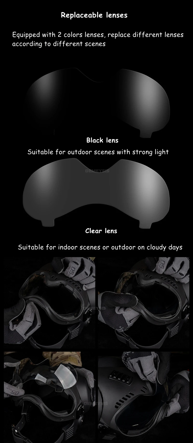 ✔ Diseño Modular: Orejeras desmontables + 2 lentes intercambiables (uso día/noche).