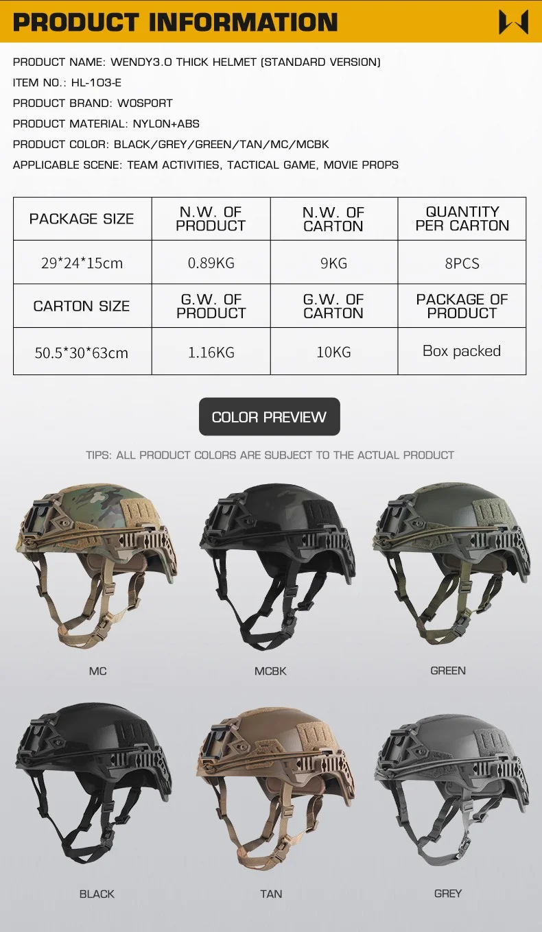 Casco táctico del equipo Wendy 3,0, versión estándar, casco de entrenamiento con almohadilla de revestimiento FAST MICH, correa para la barbilla para combate, tiro Airsoft