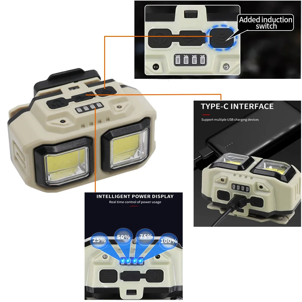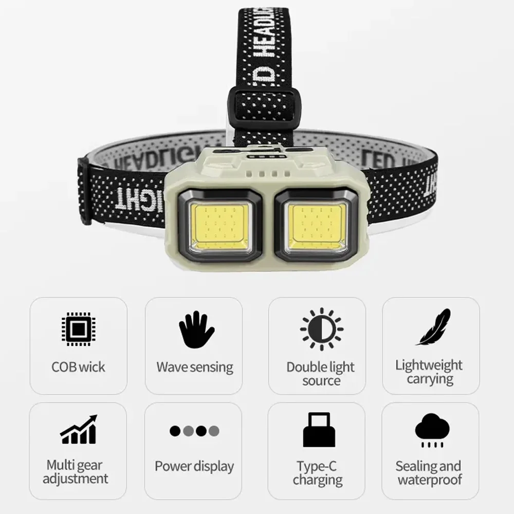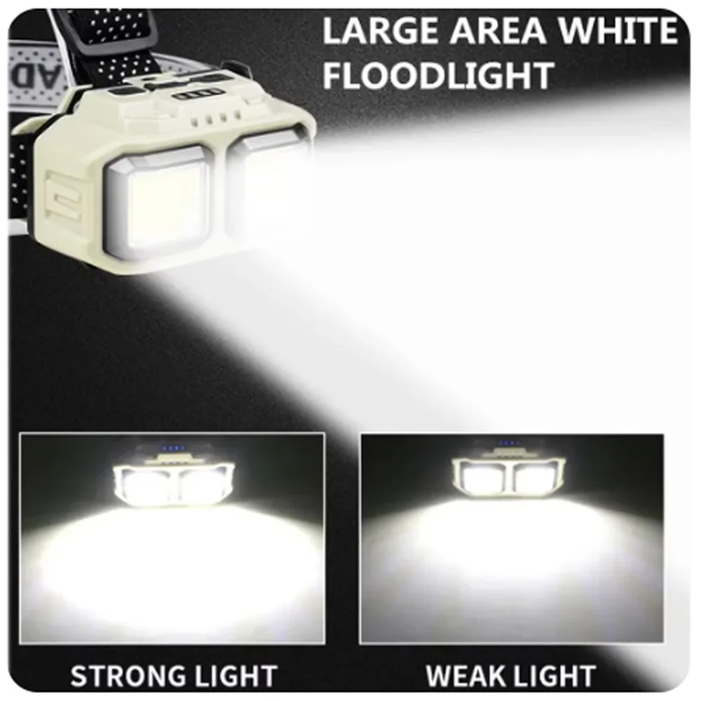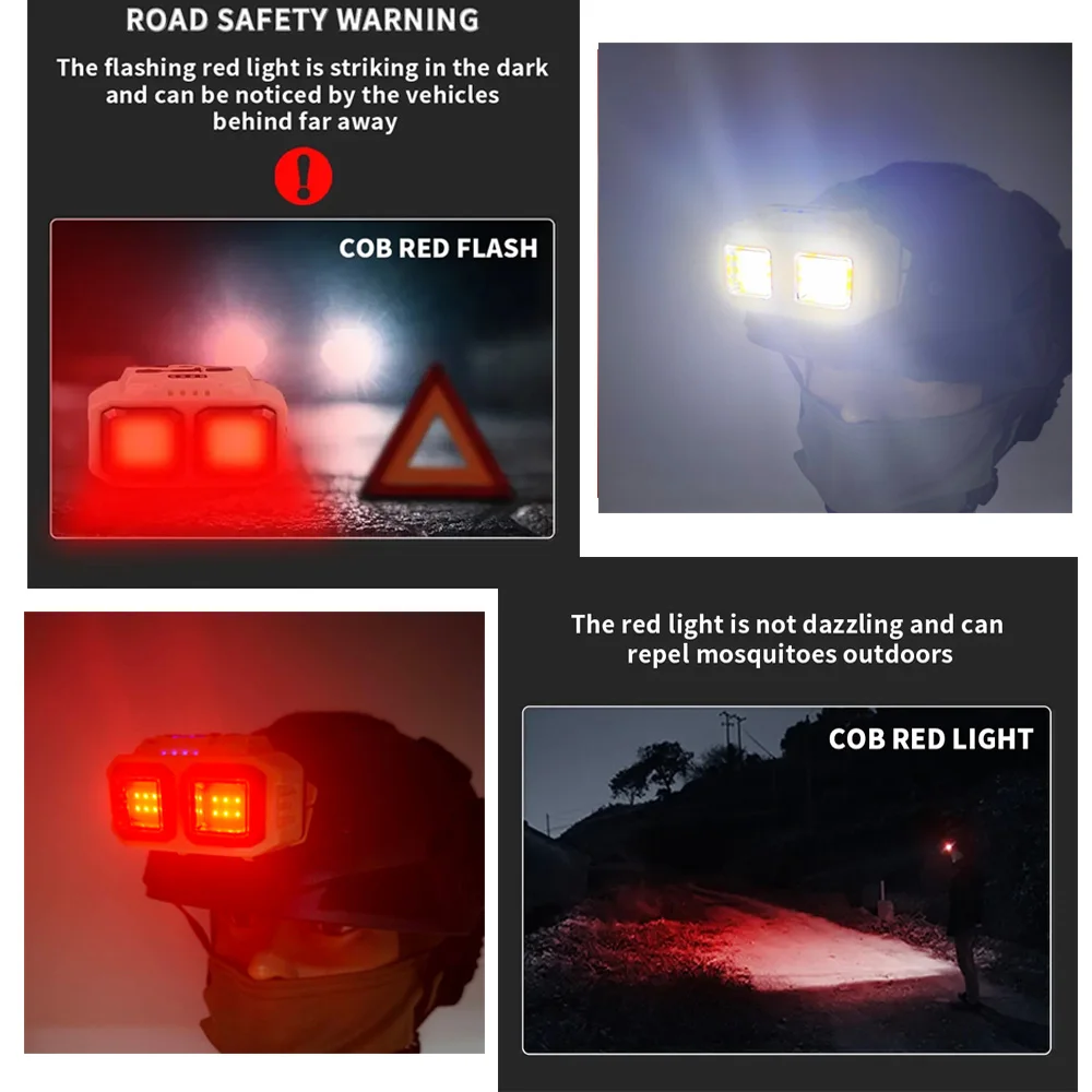 1-USB rechargeable COB headlamp, white light and red signal light Modes