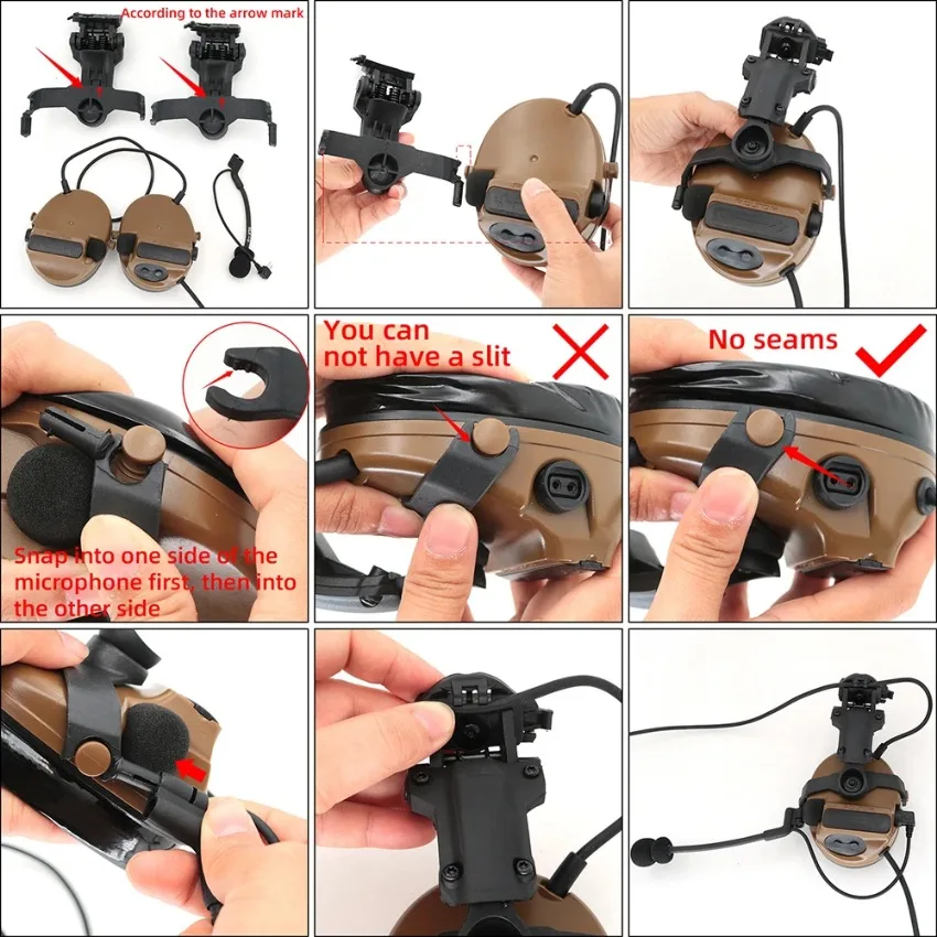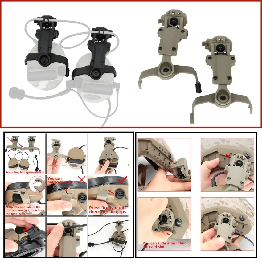 Compatible con el soporte adaptador de riel ARC para casco de auriculares tácticos COMTAC II III