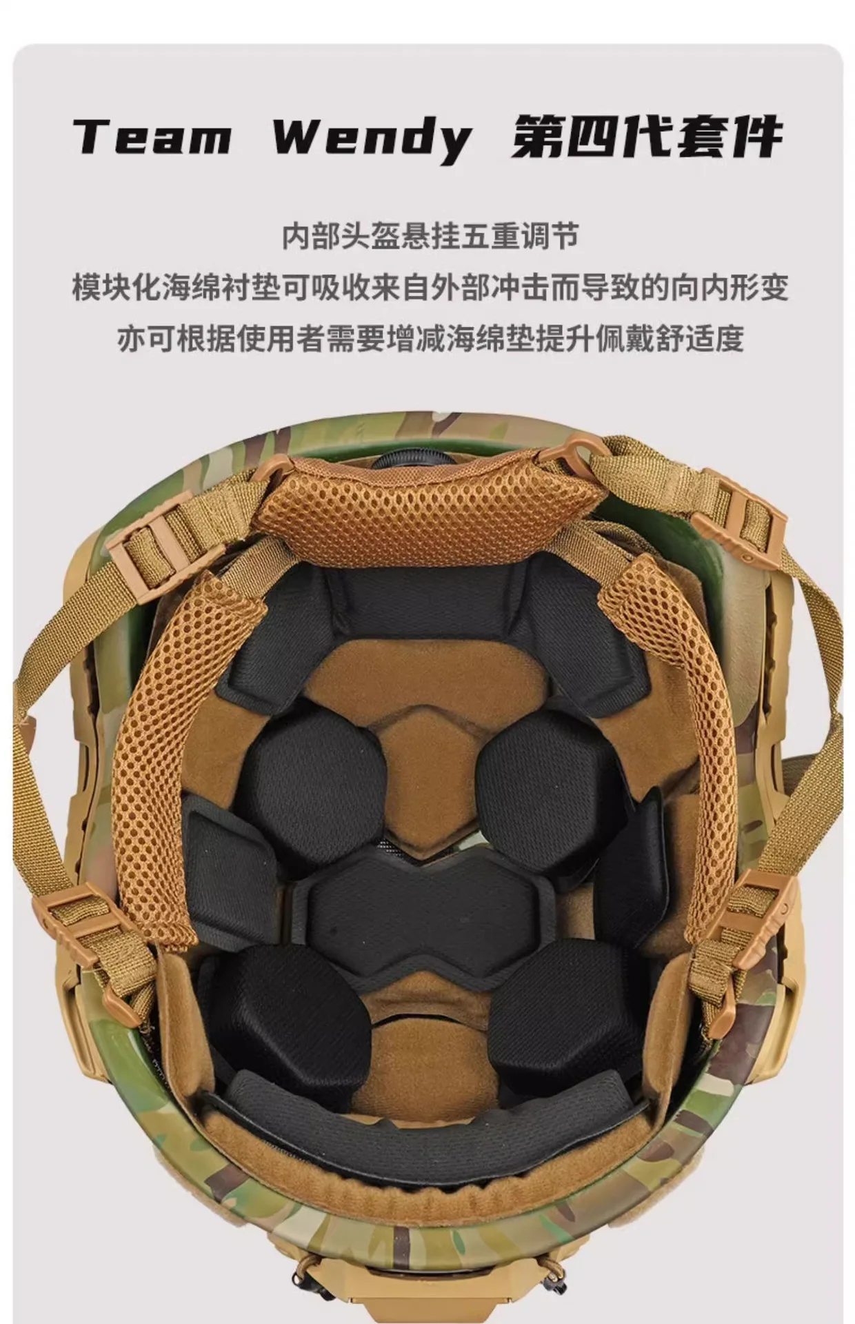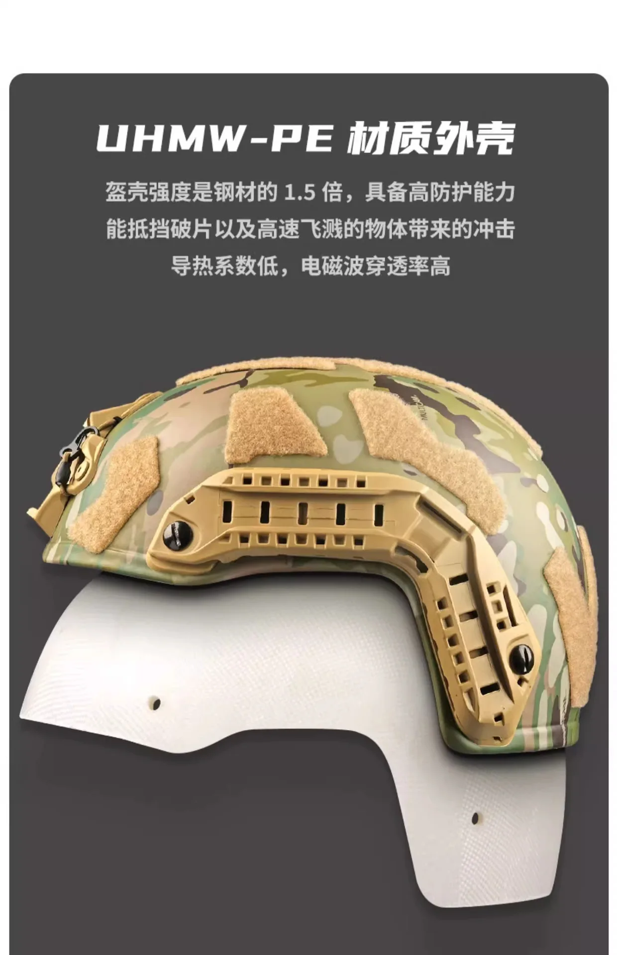 La carcasa del casco presenta un rendimiento protector con una resistencia 1,5 veces mayor que la del acero, lo que ofrece altas capacidades de protección.Puede soportar el impacto de fragmentos y salpicaduras de objetos a alta velocidad, tiene una baja conductividad térmica y una alta tasa de penetración de ondas electromagnéticas.