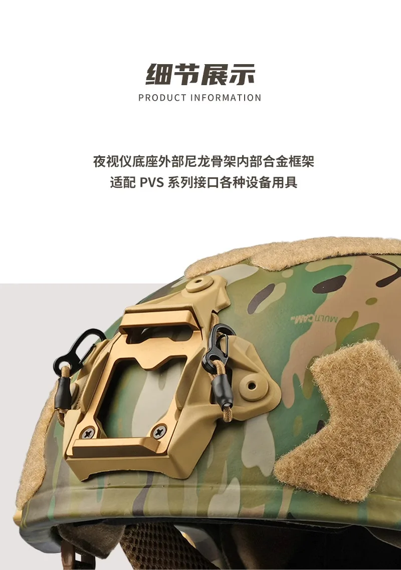 1.Equipado con la nueva base de plástico de ingeniería del marco interior de aleación de esqueleto de 3 puntos de diseño OPS (con bandas de goma de gancho incorporadas para fijar dispositivos de visión nocturna), es adecuado para las funciones generales de la mayoría de los soportes de montaje NVG.