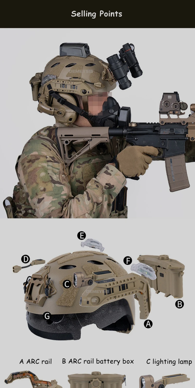 Juego de casco modular ARC Rail SF - Sistema de iluminación táctica