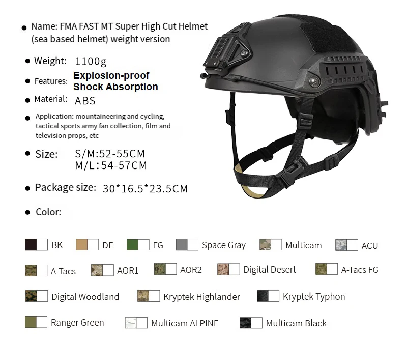 Casco FMA FAST MT de corte súper alto (marítimo) Casco táctico versión pesada