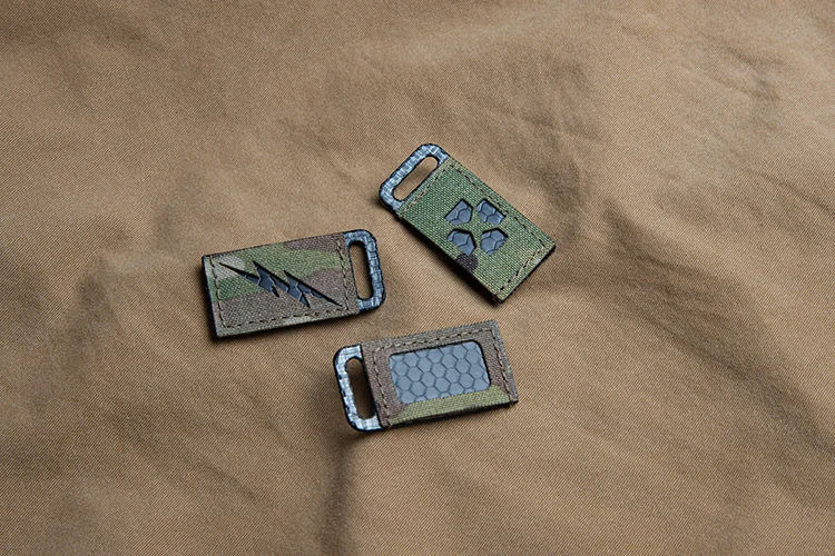 Uso: la ranura cruzada de las pegatinas de identificación IR se puede utilizar para pasar a través de la cuerda antipérdida. La parte posterior de las pegatinas de identificación es un gancho de inyección de velcro, que se puede adherir y fijar en el equipo con gamuza de velcro.