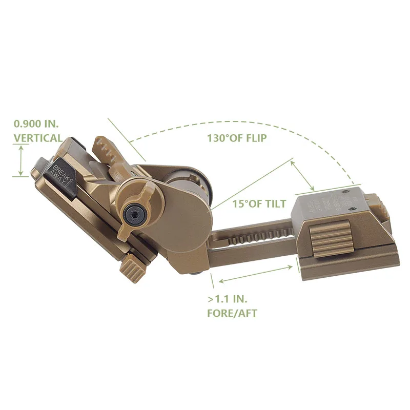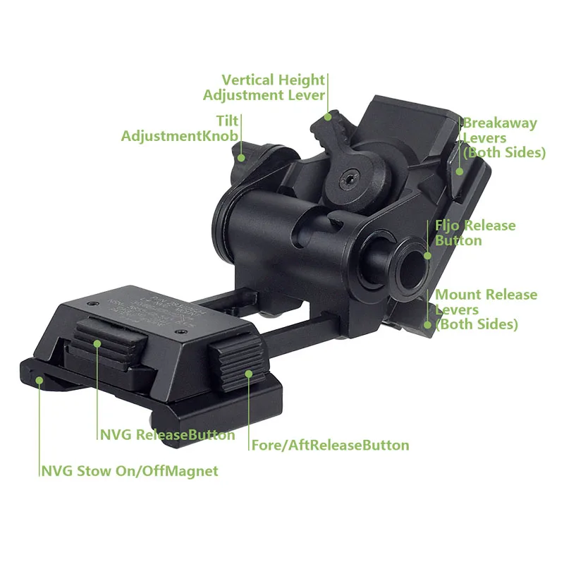 Lock Release Lever allows NVG height to be easily adjusted up or down, then secured.