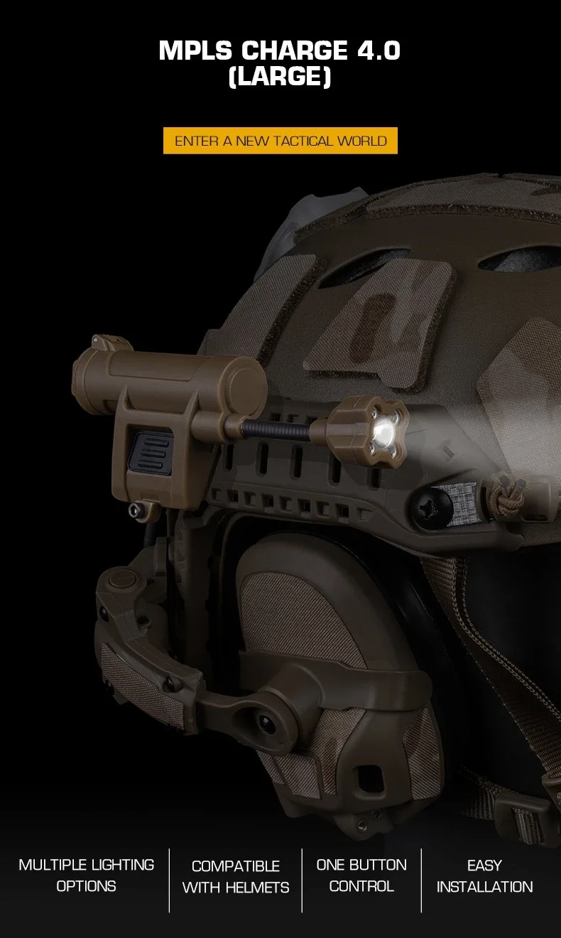 Casco táctico ligero de 4. a generación MPLS CHARGE grande 5 modos rojo/verde/azul/blanco/IR IFF luz senderismo caza equipo casco accesorio