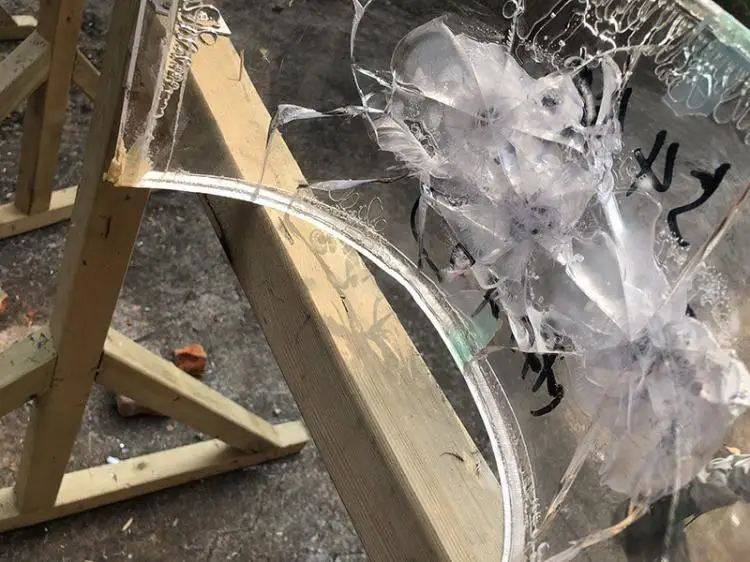 Material a prueba de balas: PC + PU (1,0 mmPC + 1,25 mmPU + 12,0 mmPMMA + 1,25 mmPU + 6,0 mmPC)
