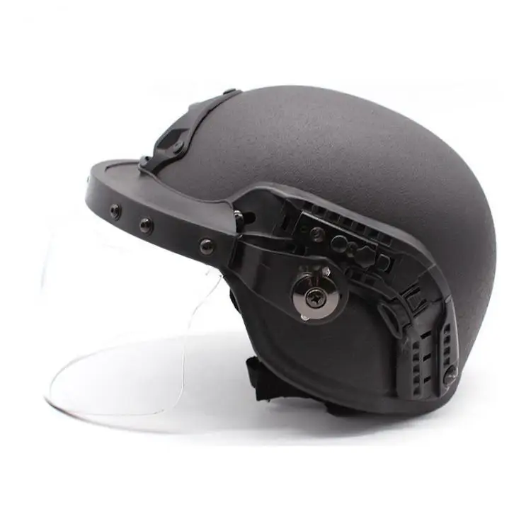 Descripción del rendimiento: diseño liviano; Puede equiparse con PASGT, M88 y otros cascos, sin el uso de rieles laterales y soportes NVG, mejora la seguridad general, con la transmisión de luz más alta, minimiza la distorsión de la pantalla del filtro; la altura del vidrio es ajustable.
