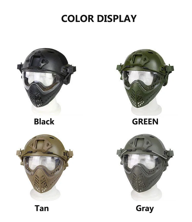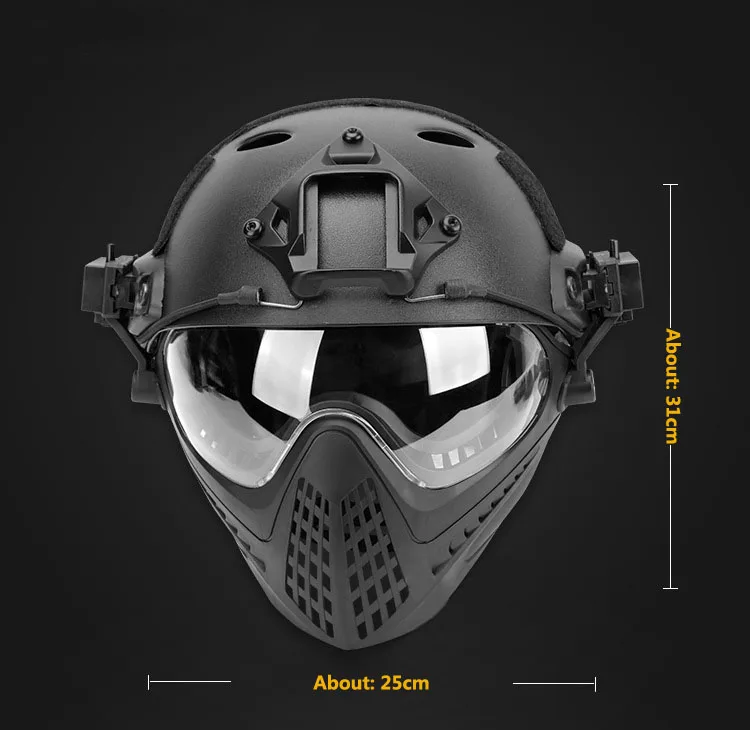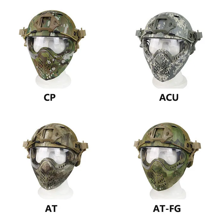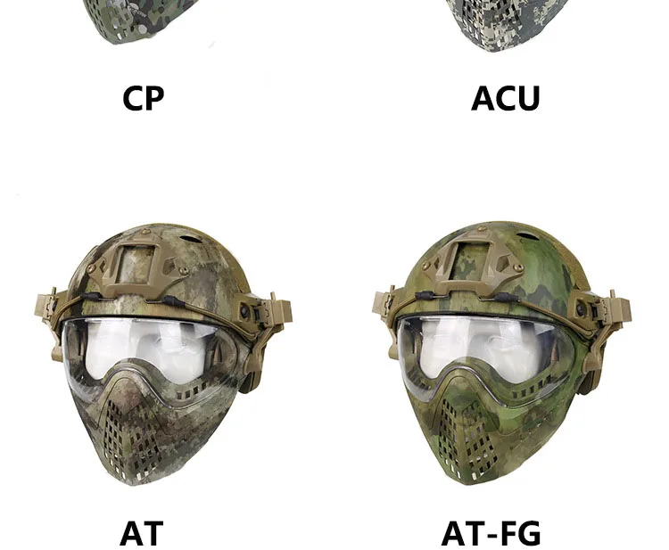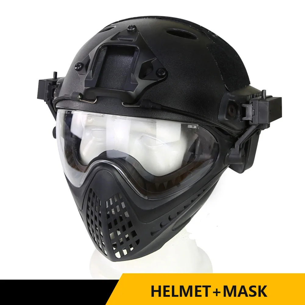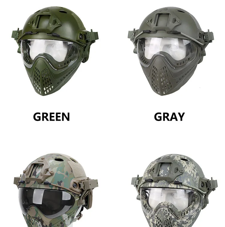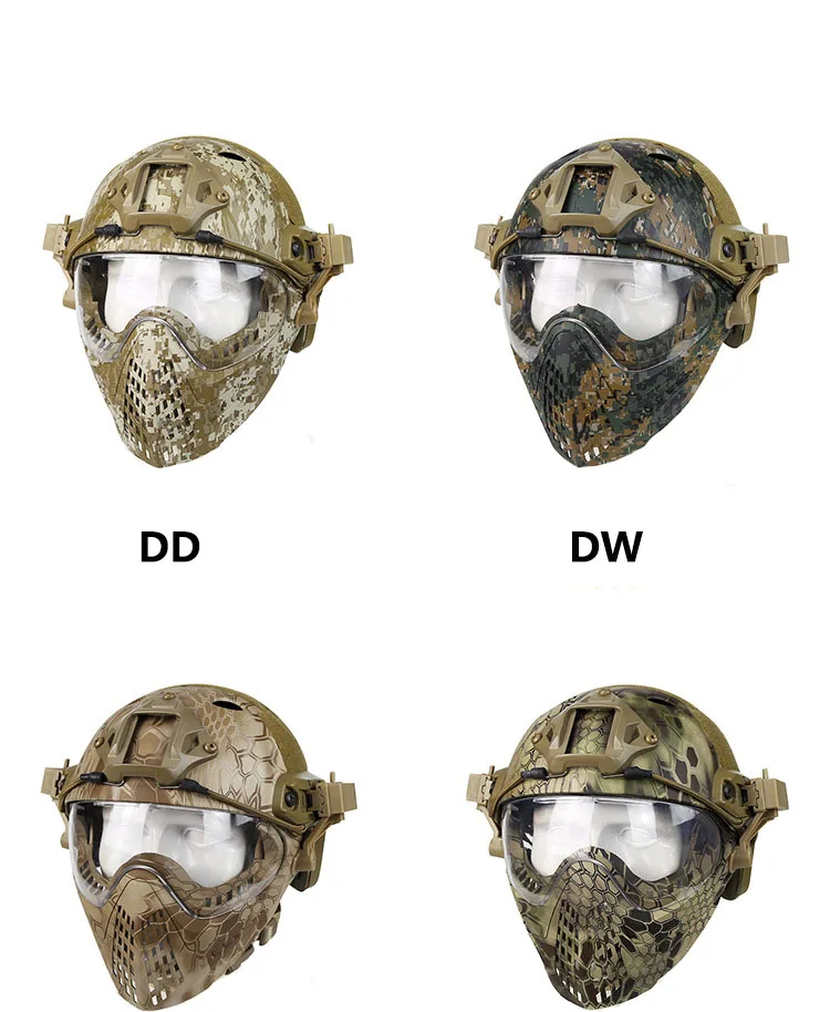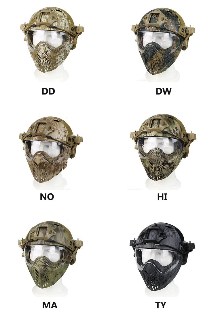 Casco táctico militar de cara completa, caza, tiro, Airsoft, Paintball, gafas protectoras, máscara, casco de combate rápido