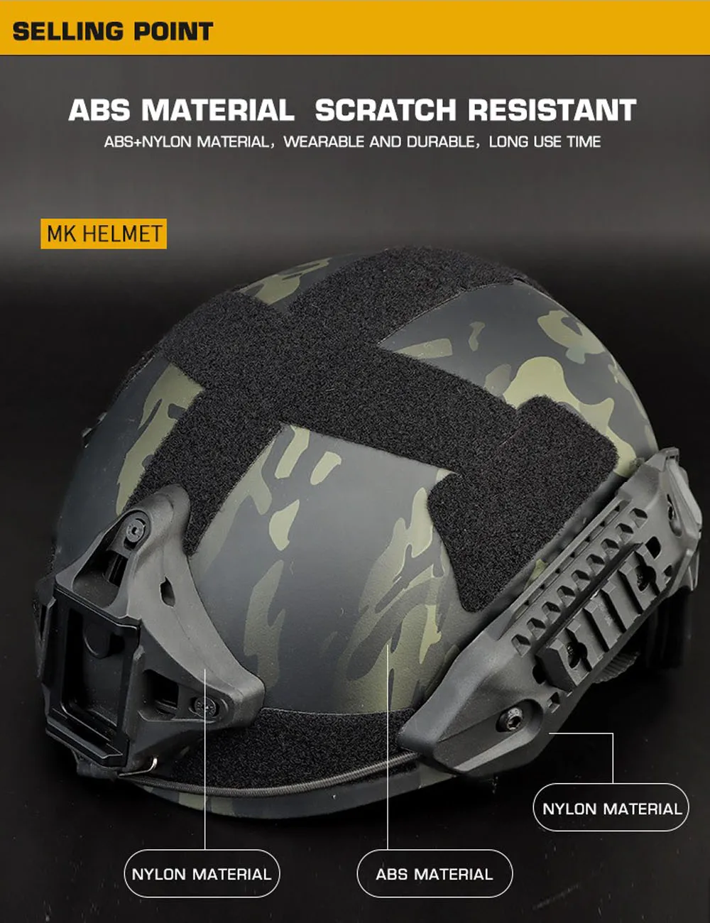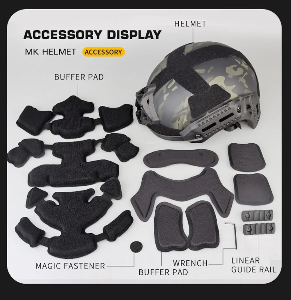 Casco táctico MK engrosado para caza al aire libre, entrenamiento de combate, casco rápido, tiro Airsoft, ciclismo, deportes, equipo de protección completa