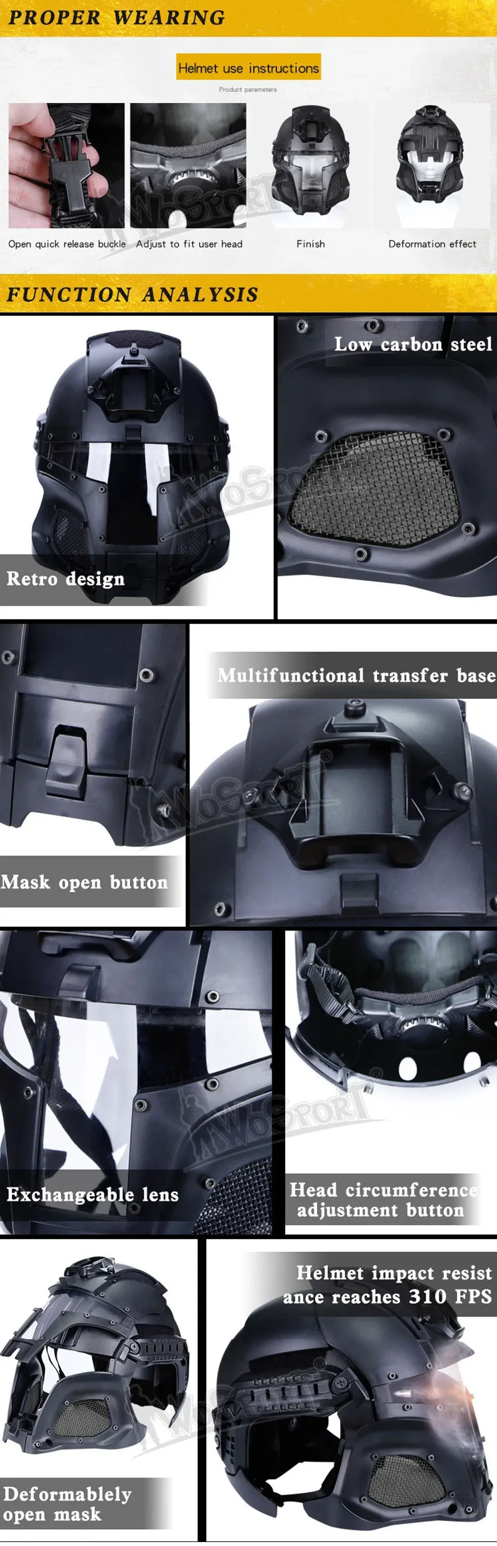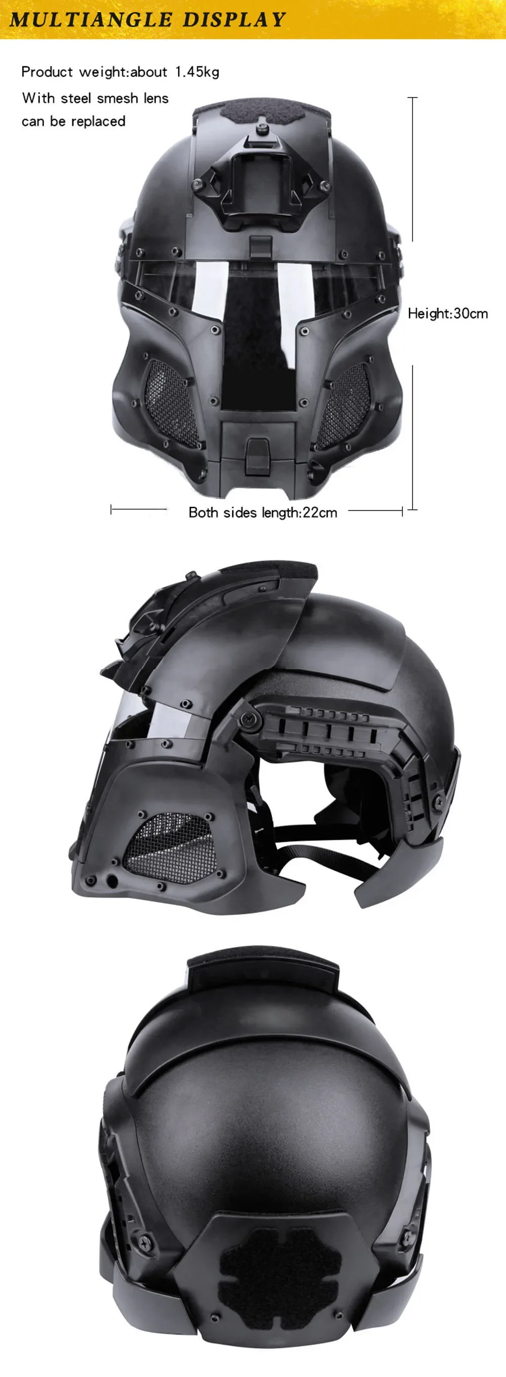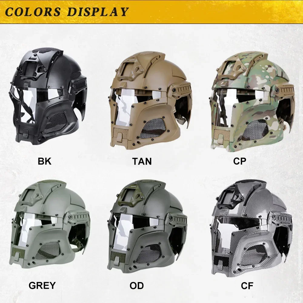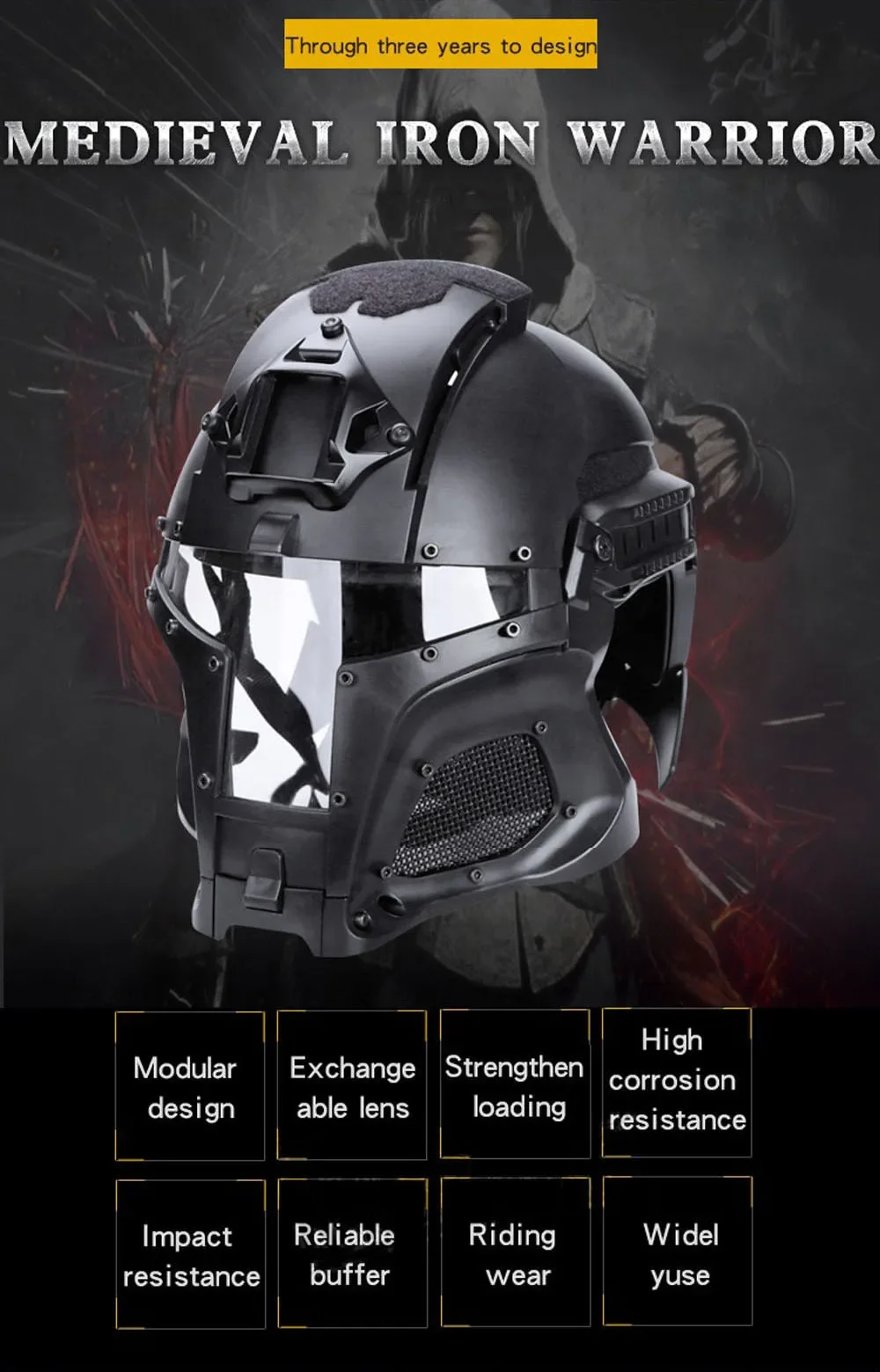 Casco Táctico Modular Medieval Iron Warrior Protector Paintball Airsoft Casco Lentes Reemplazables Deportes al Aire Libre Equipo de Ciclismo