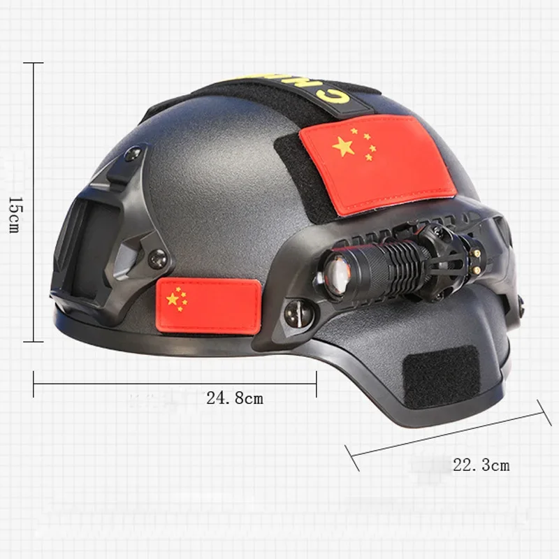 - Paneles de cinta mágica: paneles de cinta mágica en la derecha, izquierda y parte posterior del casco para parches morales, placas de identificación y pestañas reflectantes.