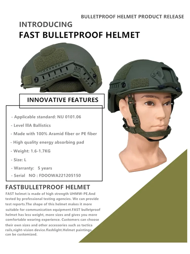 Casco táctico a prueba de balas para soldados: parada de pistola y metralla, ajuste cómodo, compatible con auriculares de comunicación