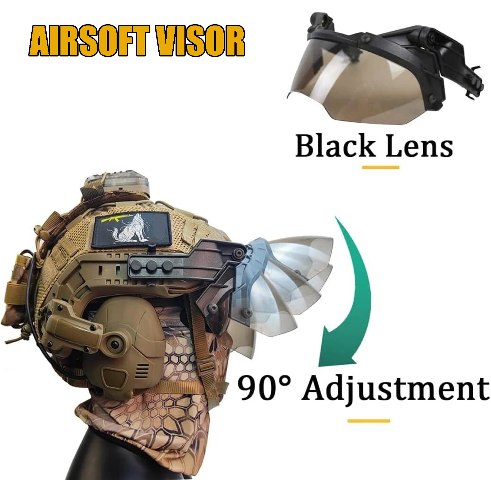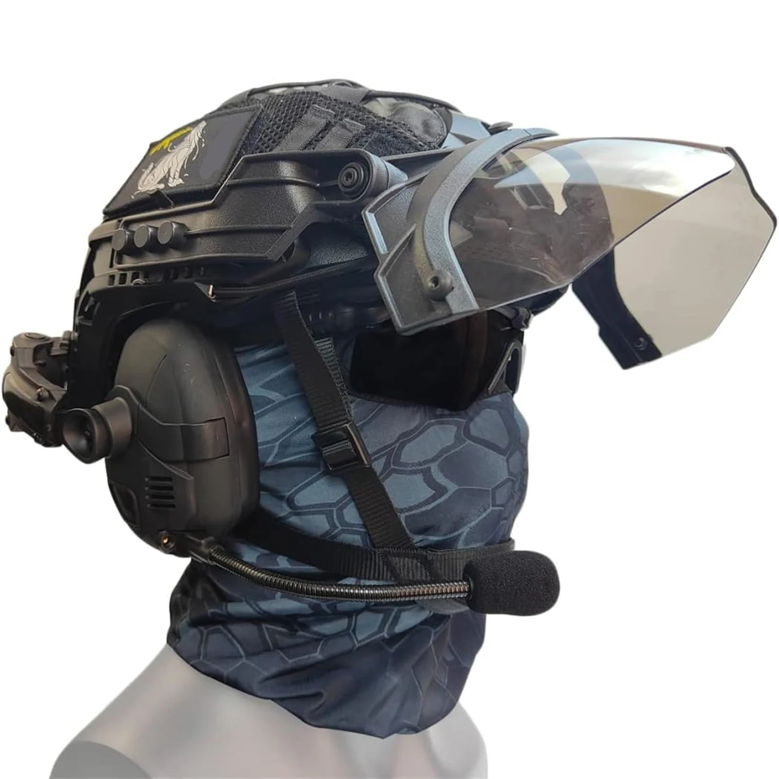 Casco táctico rápido con auriculares Bluetooth para Airsoft Pasamontañas Gafas Visera Casco protector para tiro con paintball para caza