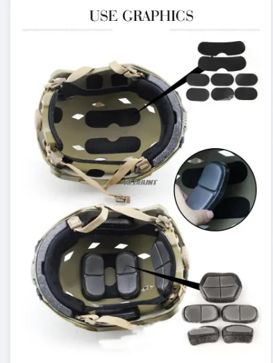 Almohadilla de cojín interior táctica para casco rápido con pegatina de gancho