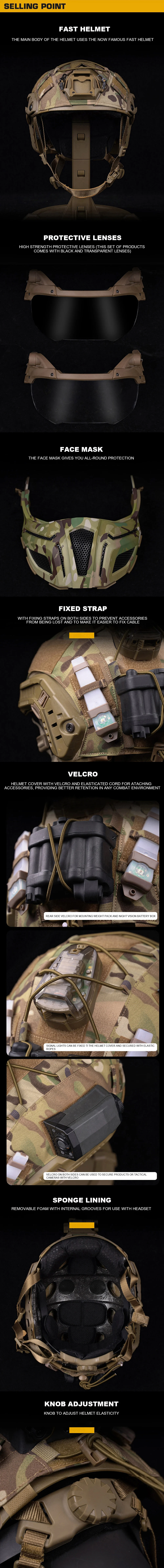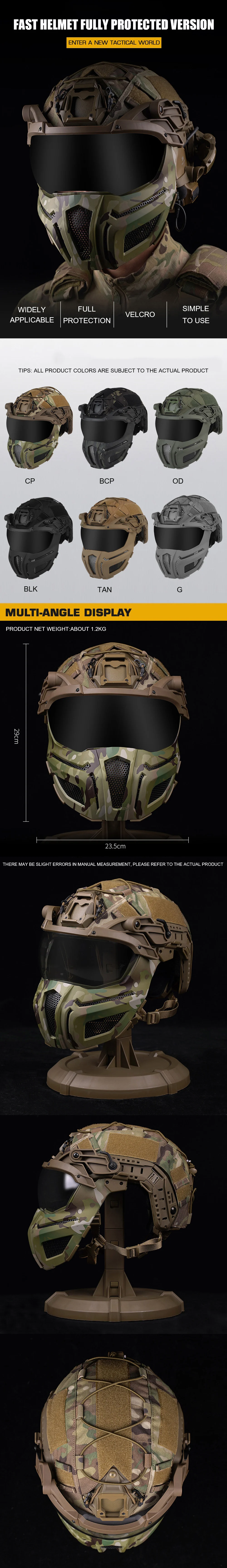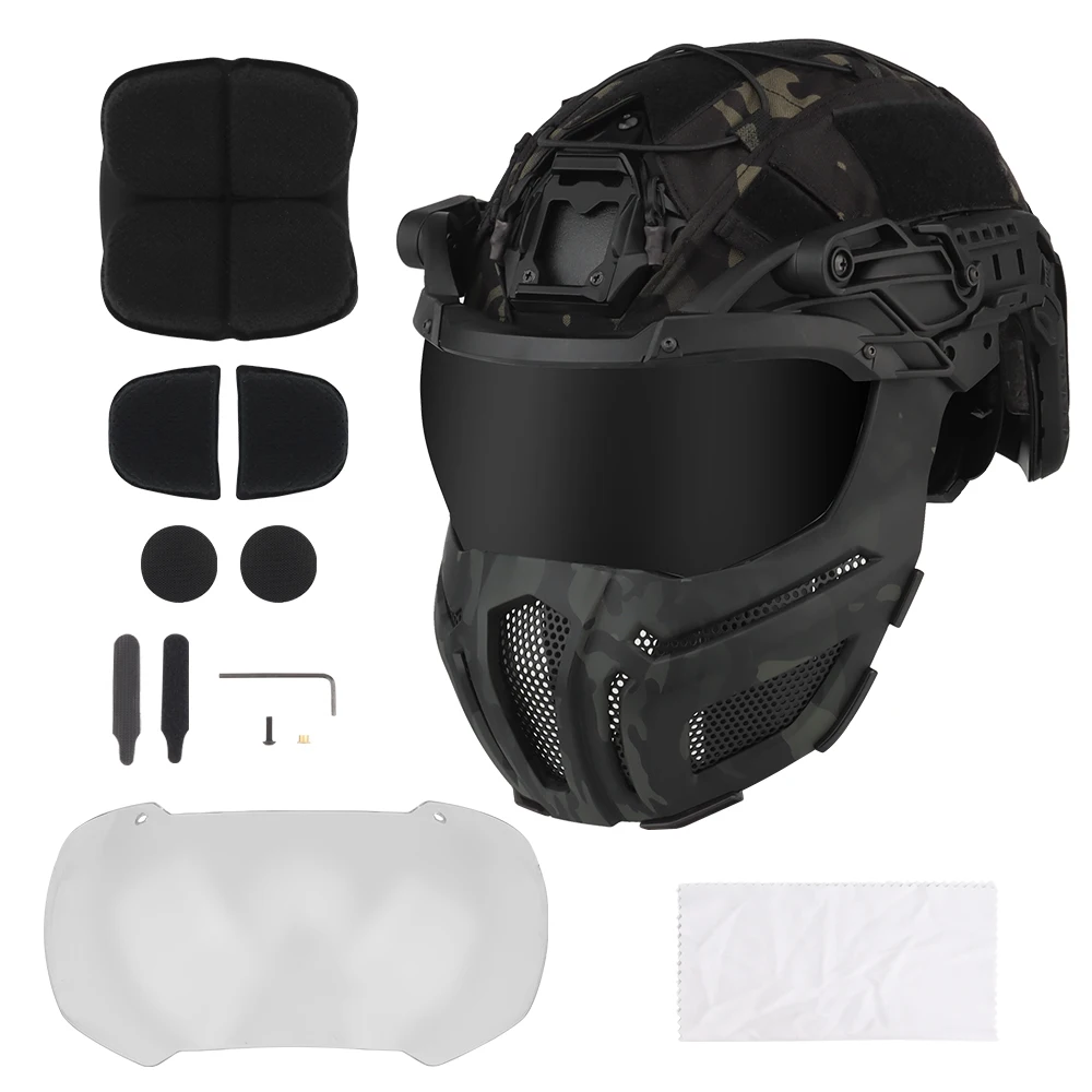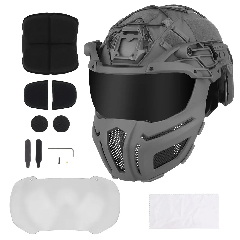 Casco táctico RÁPIDO con máscara de gafas Protección completa Caza Combate Airsoft Casco Deportes al aire libre Ciclismo Casco DE SEGURIDAD Equipo