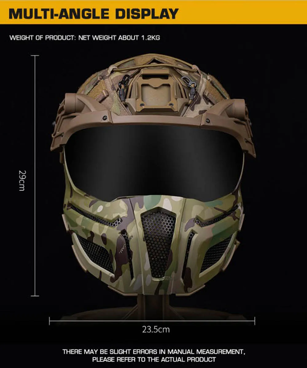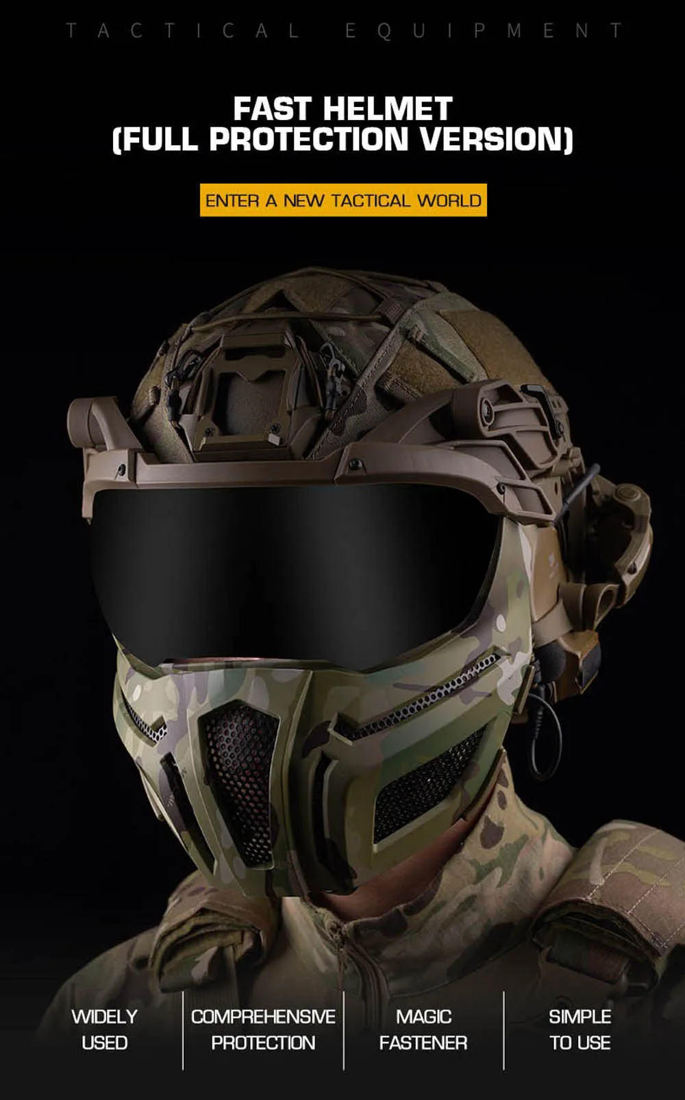 Nombre del producto: casco FAST (versión de protección total) Número de artículo.:HL-100 Tamaño del producto: 33*25*24CM Peso neto del producto: 1,2 KG Peso bruto del producto: 1,6 KG Color del producto: negro/verde/bronceado/gris/MC/MCBK Material principal: malla de acero de nailon. Escena aplicable: caza, deportes al aire libre y otros accesorios tácticos de atletismo Airsoft CS, etc.
