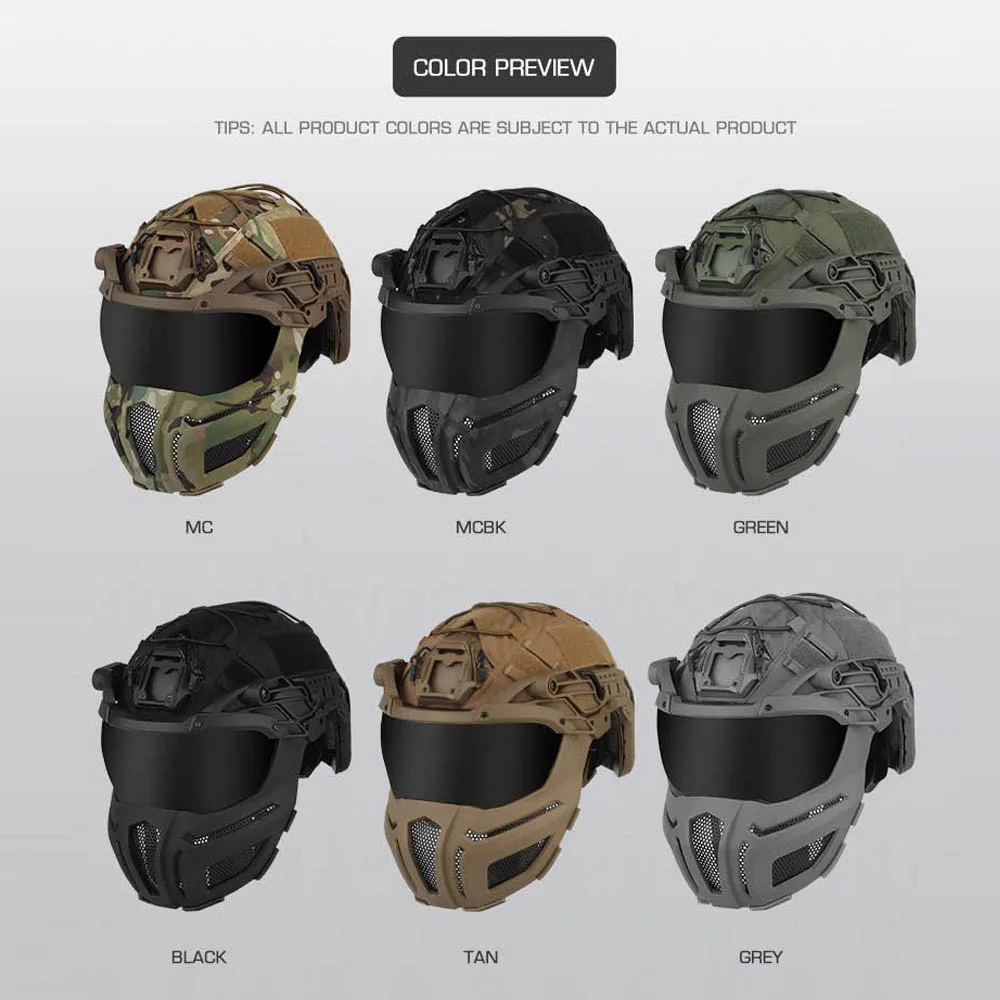 Casco táctico FAST media máscara facial con gafas abatibles lentes negras/transparentes de 2 uds para caza Airsoft CS juego Paintball máscara engranaje