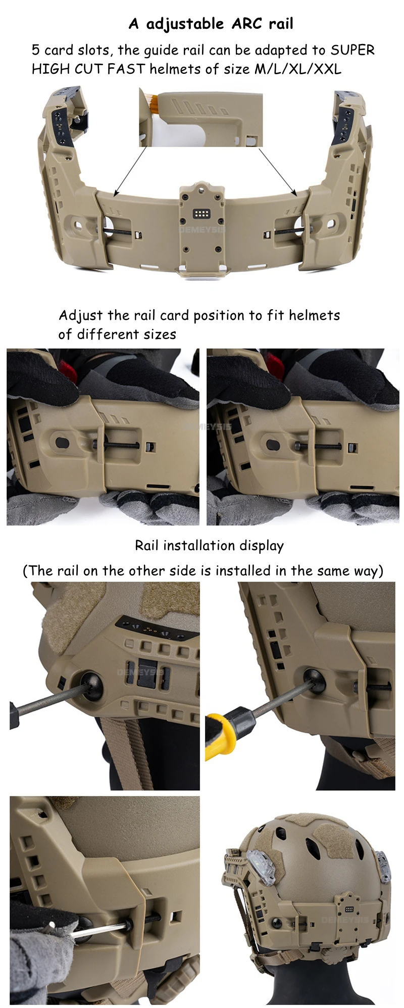 ⚡ Riel ajustable de 5 ranuras– Se adapta a cascos de corte súper alto M-XXL