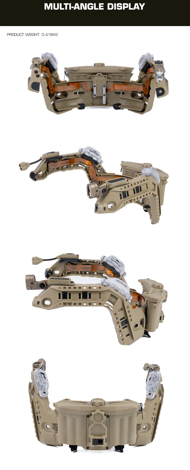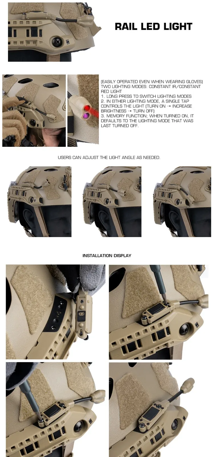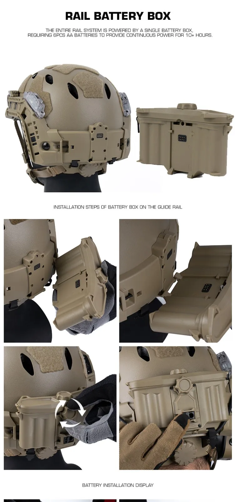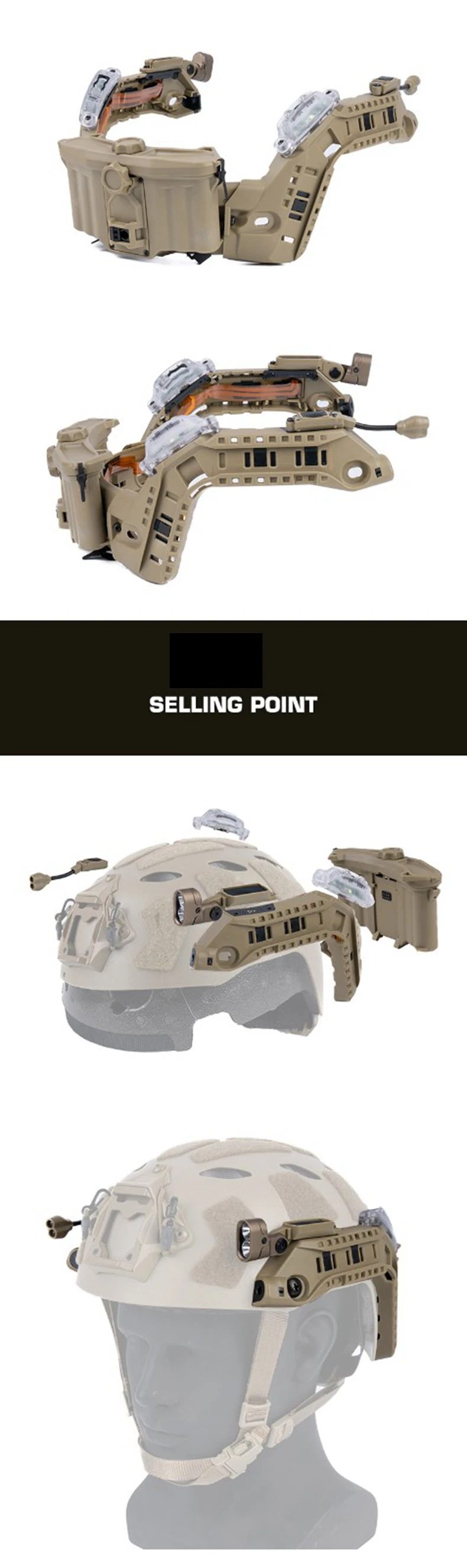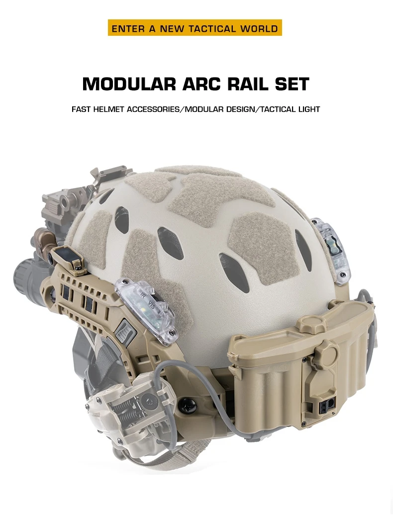 Equipo modular de casco rápido táctico con riel ARC integrado, caja de batería, luz IR, linterna LED, luz de señal doble