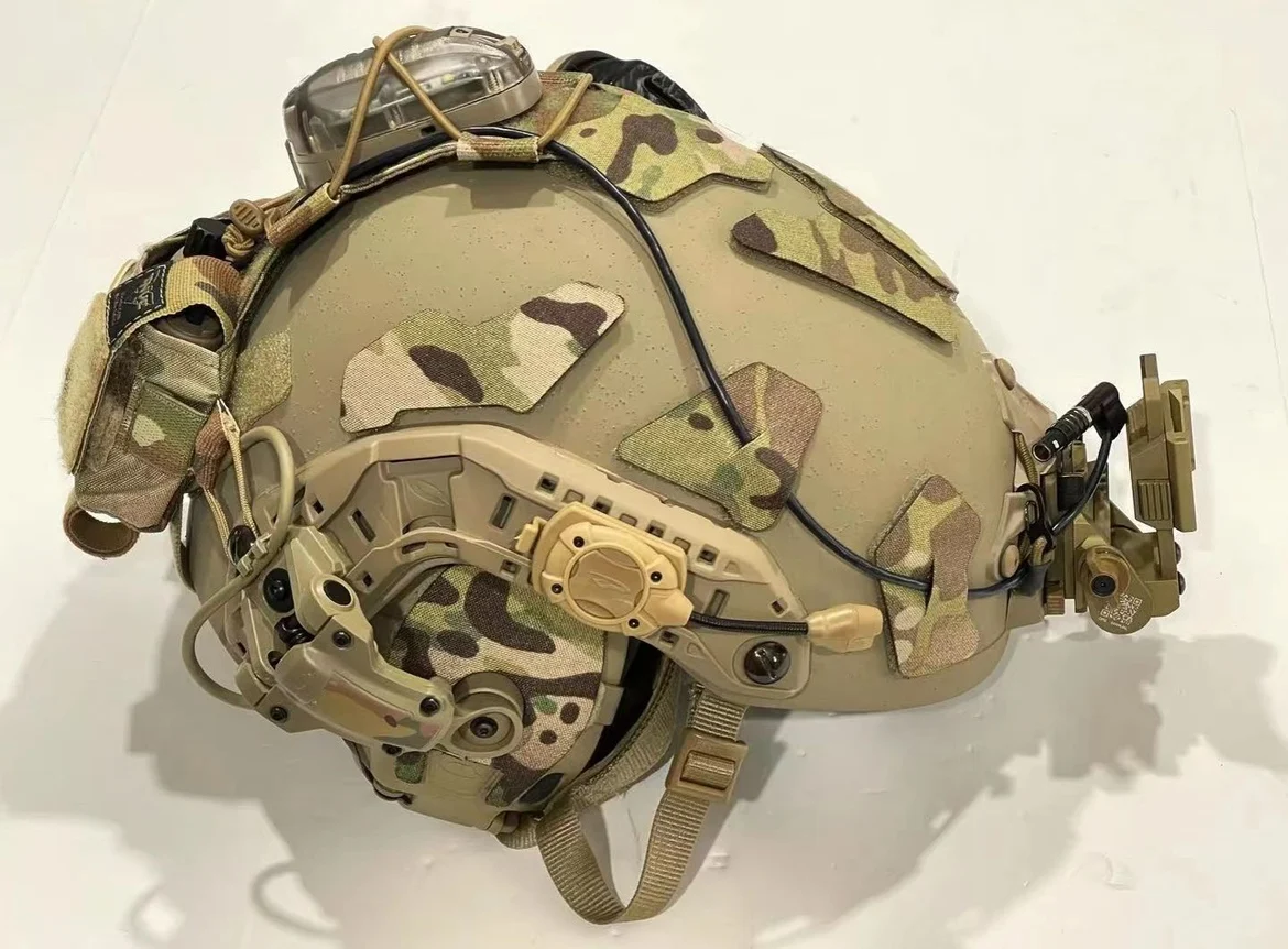 Casco táctico SF, cierres de gancho y bucle de piel superior, pegatina, gancho de eyección 500d, pegatinas de camuflaje