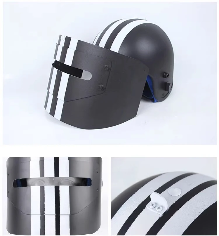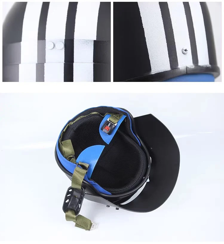 Material: el cuerpo del casco es un casco de 5 mm mABS, la máscara es una aleación de aluminio de 2 mm de espesor.
