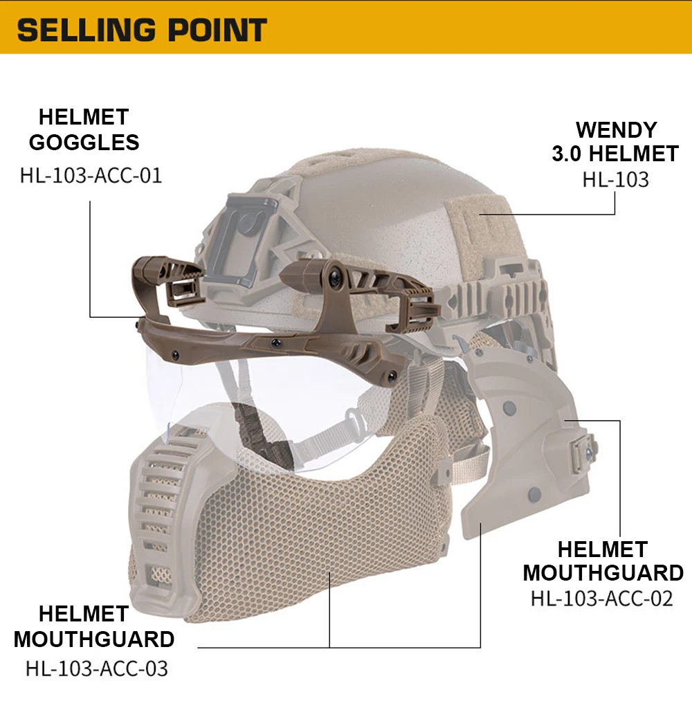 Gafas tácticas con tapa para casco de equipo de carril 3.0, casco Wendy para caza, Airsoft CS, gafas de protección para casco de Paintball