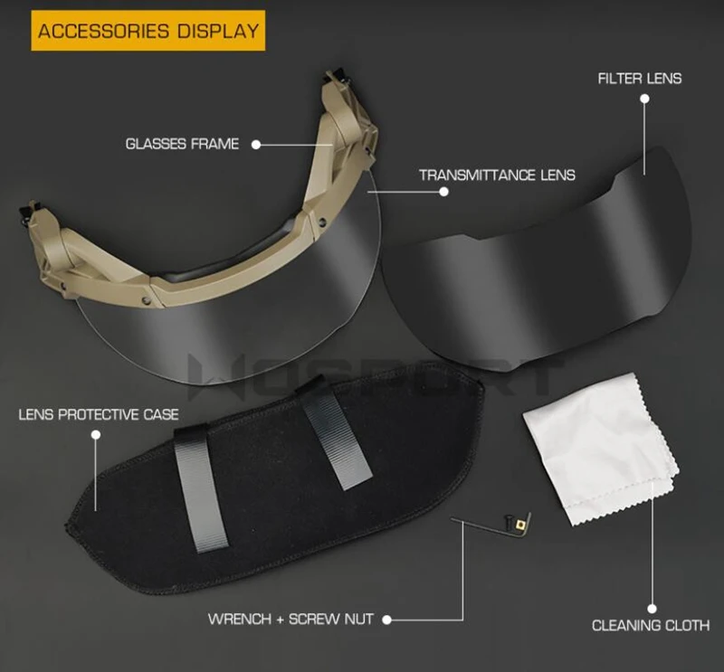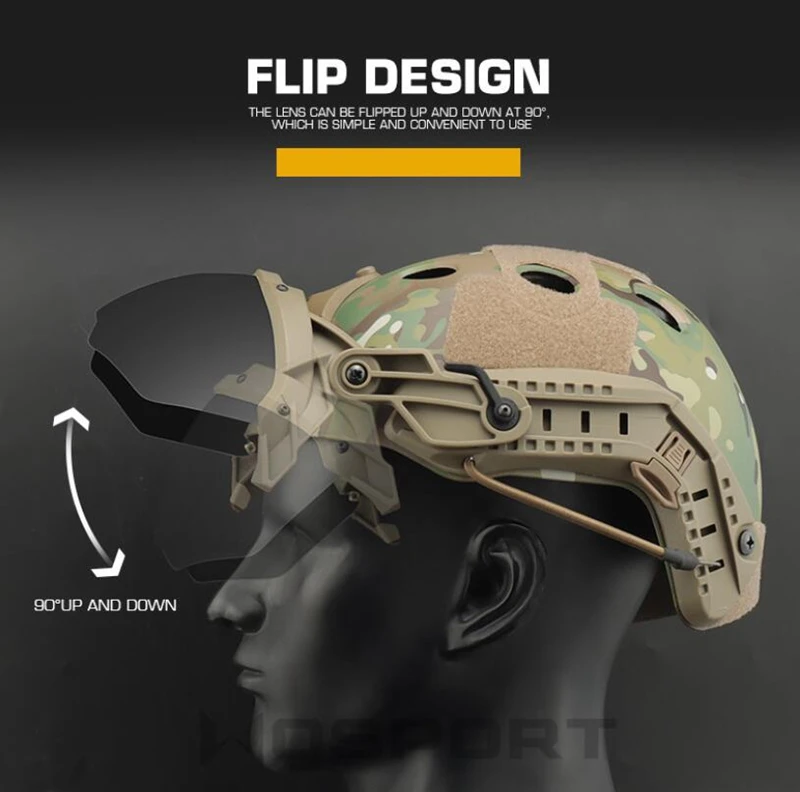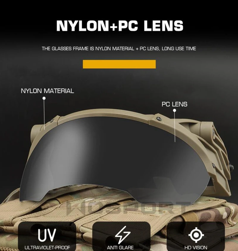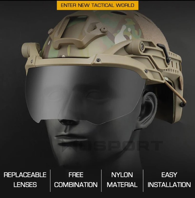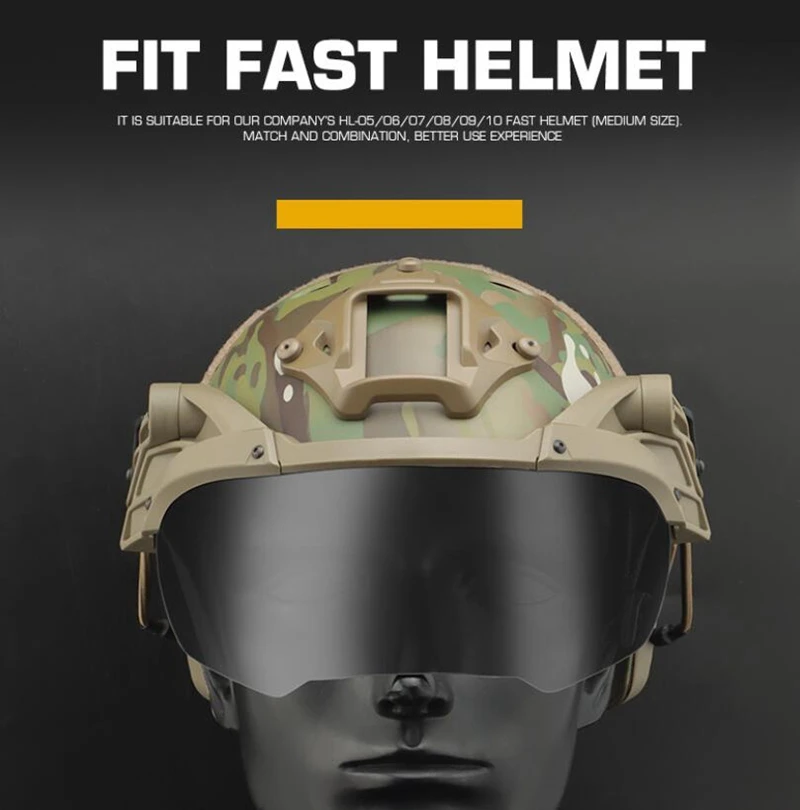 Casco táctico con tapa, gafas de caza con suspensión exterior, a prueba de viento, impermeables, gafas protectoras para los ojos, gafas antiarañuela