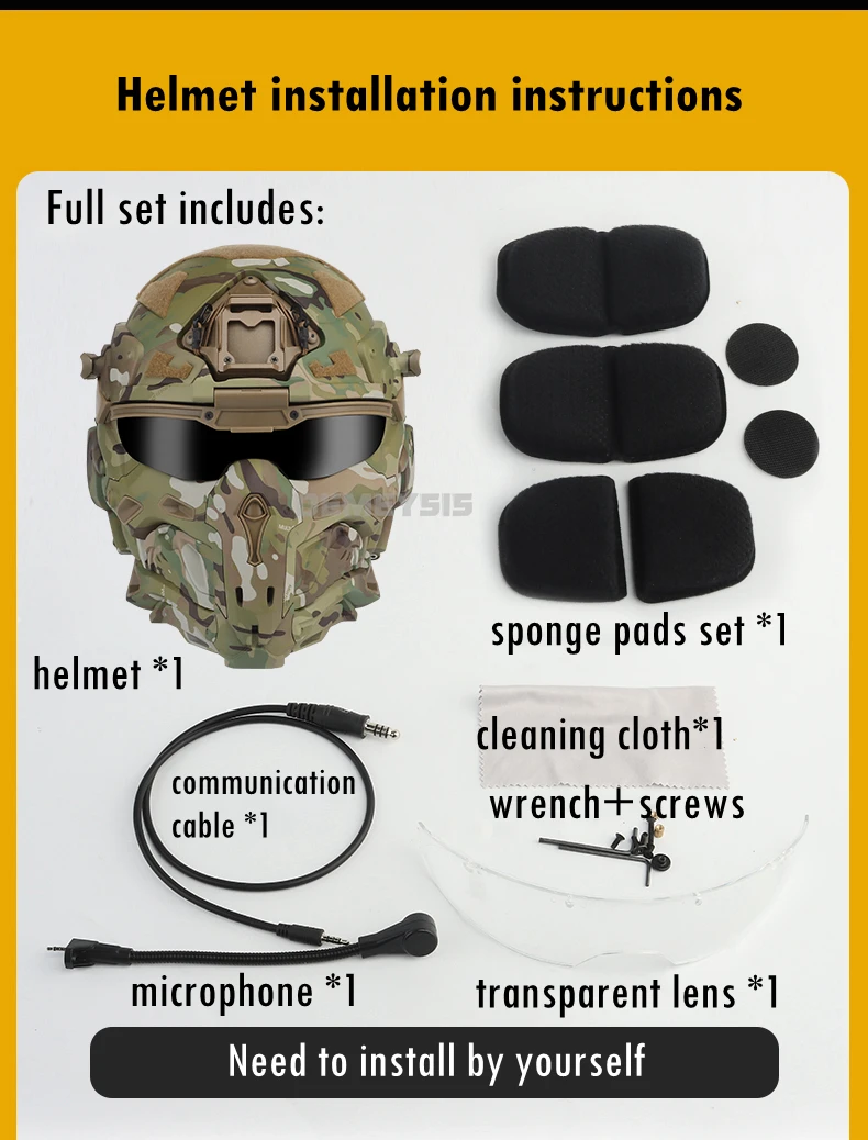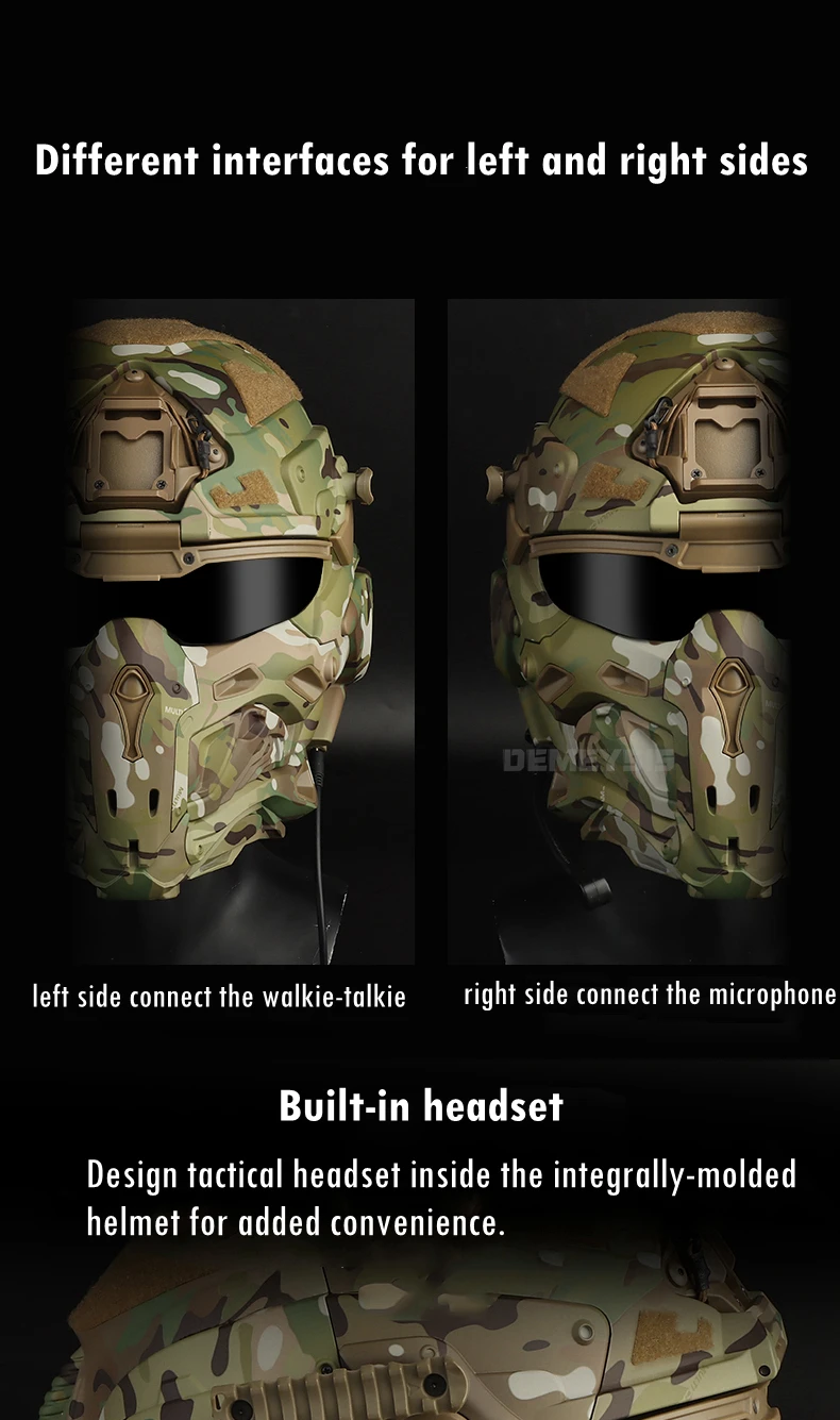 Máscara extraíble. La máscara, el casco y las gafas cooperan para formar un todo unificado, proporcionando al usuario una gama completa de protección para la cabeza.
