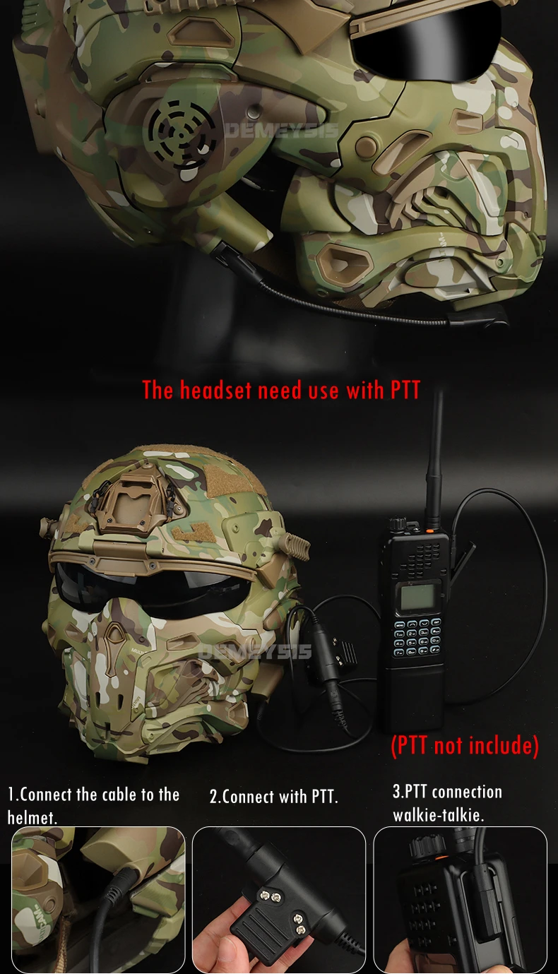 Auriculares de comunicación incorporados, deben funcionar con PPT y walkie-talkie.