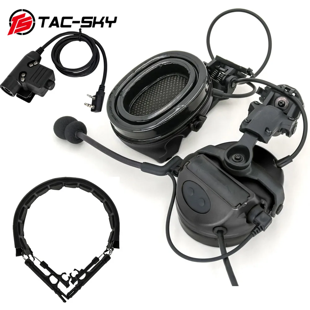 Casco táctico TS TAC-SKY, versión de montaje en riel de arco, auriculares COMTA II con diadema COMTA y adaptador Ptt, enchufe KENWOOD U94 PTT