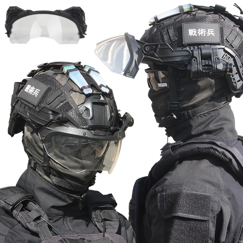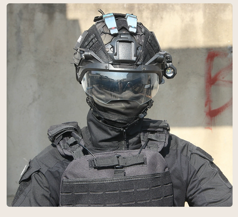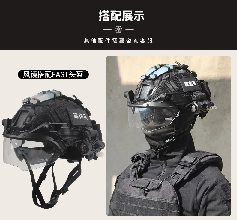 Función de los productos básicos: lentes HD antidisturbios y a prueba de polvo, con uso de casco Mich FAST, con conexión de riel de casco, puede usar gafas.