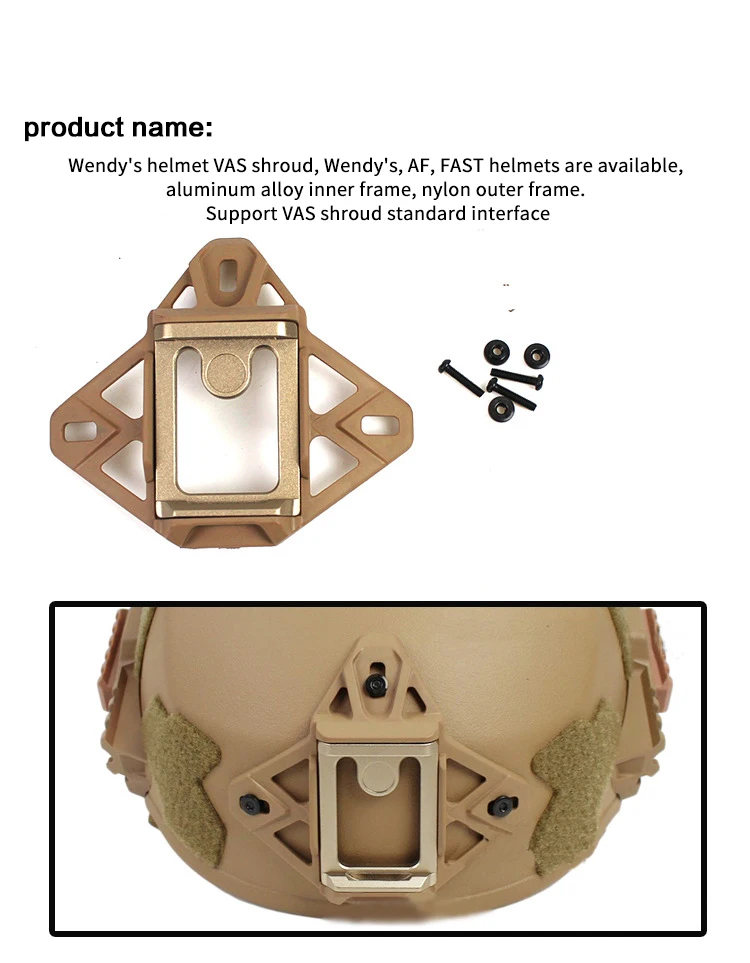 La cubierta VAS se puede instalar en cascos de combate FAST/ MICH/ACH/ AF/ Wendy para permitir a los usuarios cambiar rápidamente