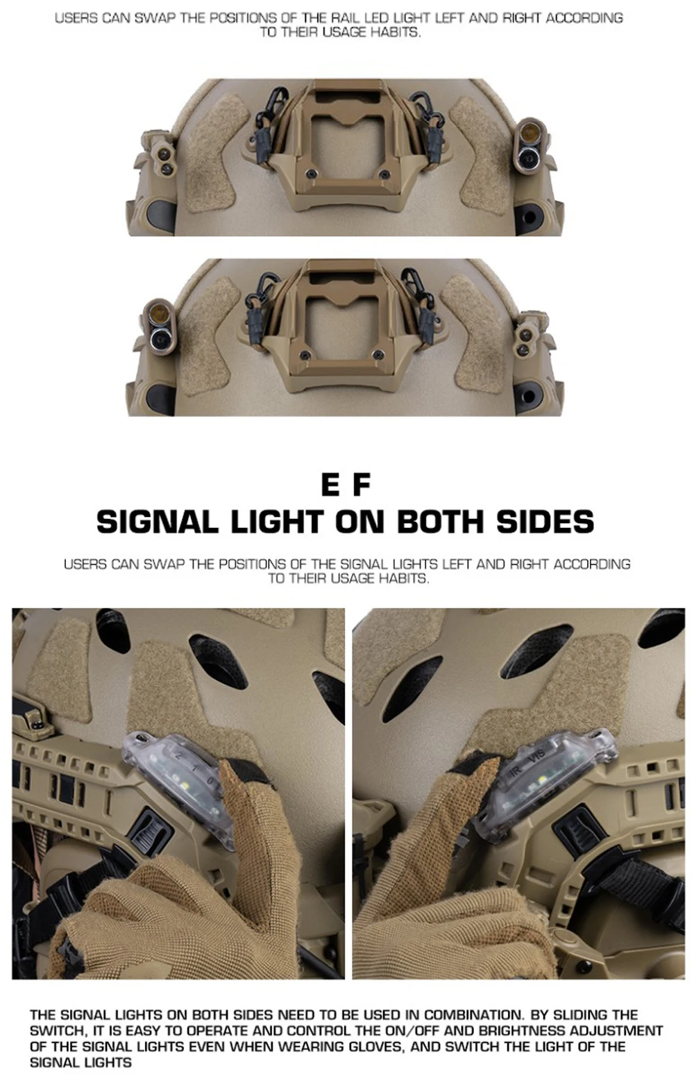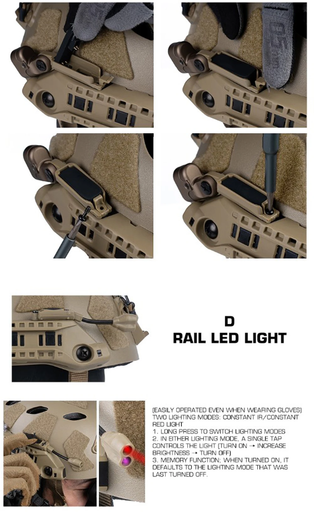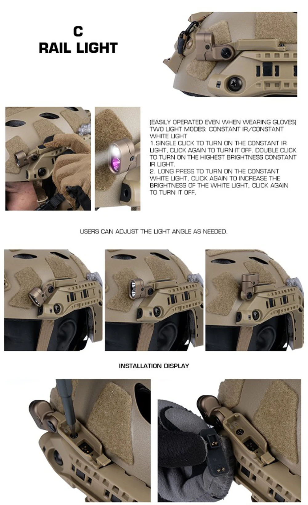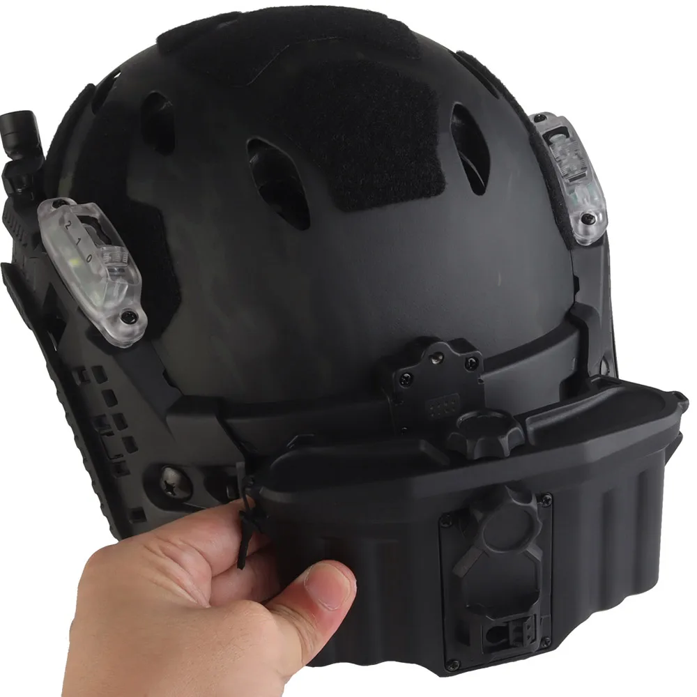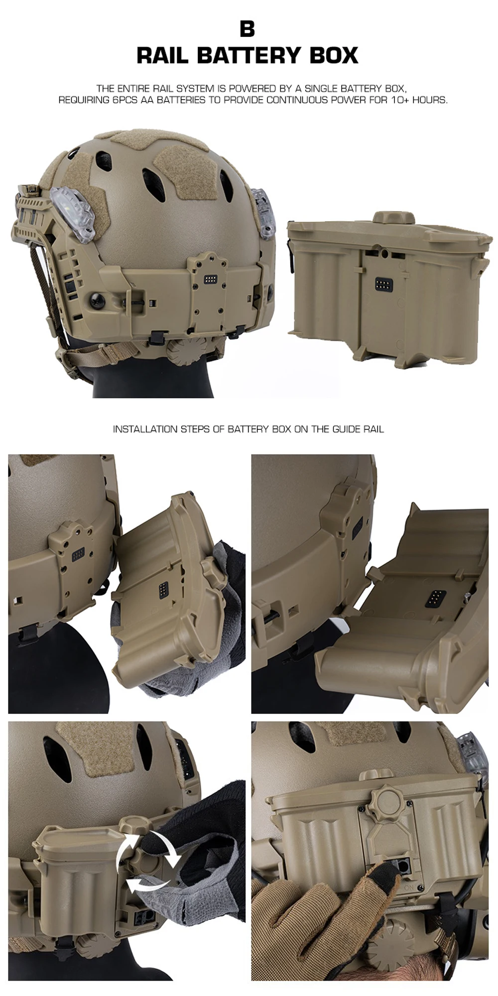 Versión de lámpara completa para casco táctico con sistema de alimentación de riel ARC modular de integración, lámpara de identificación IR, linterna LED, luz de señal doble