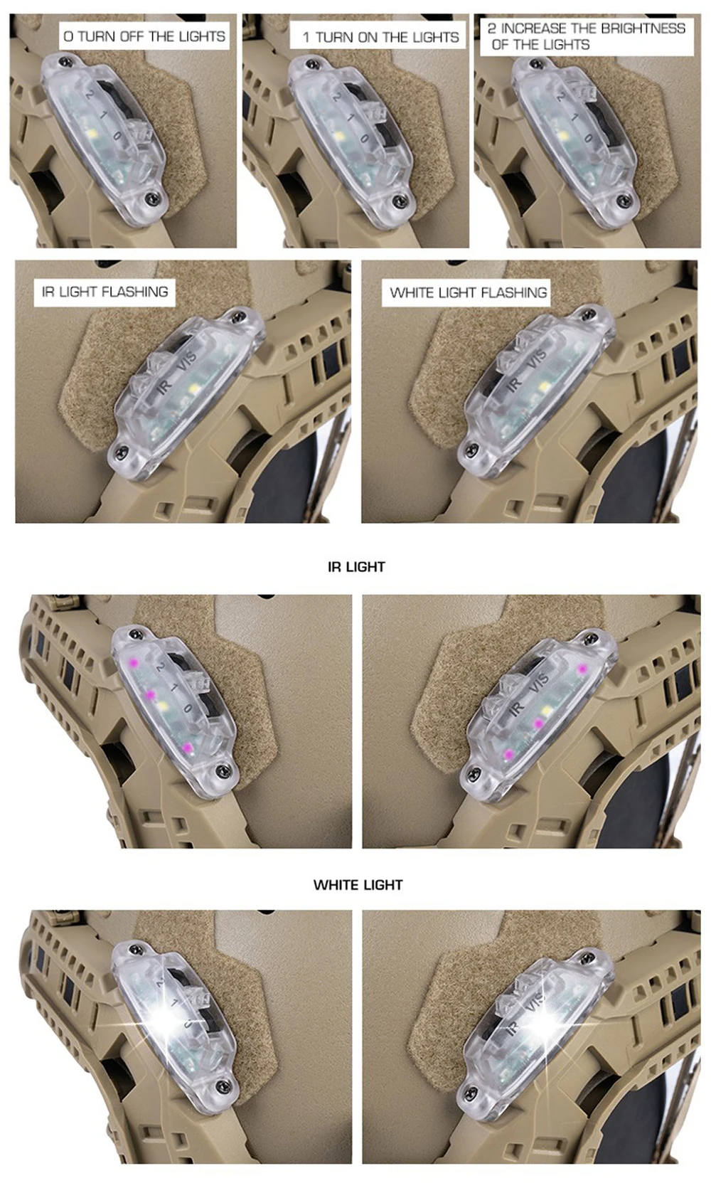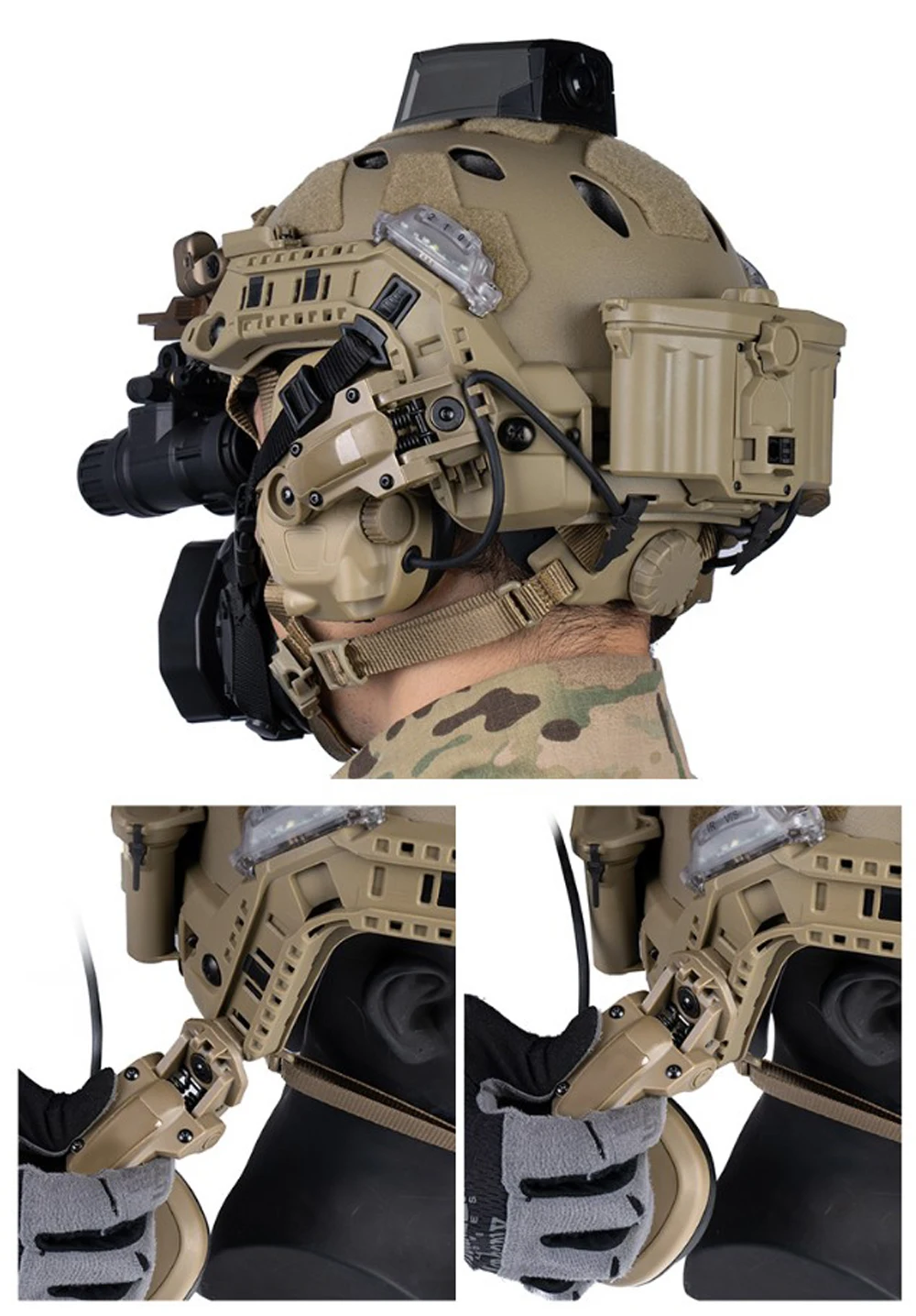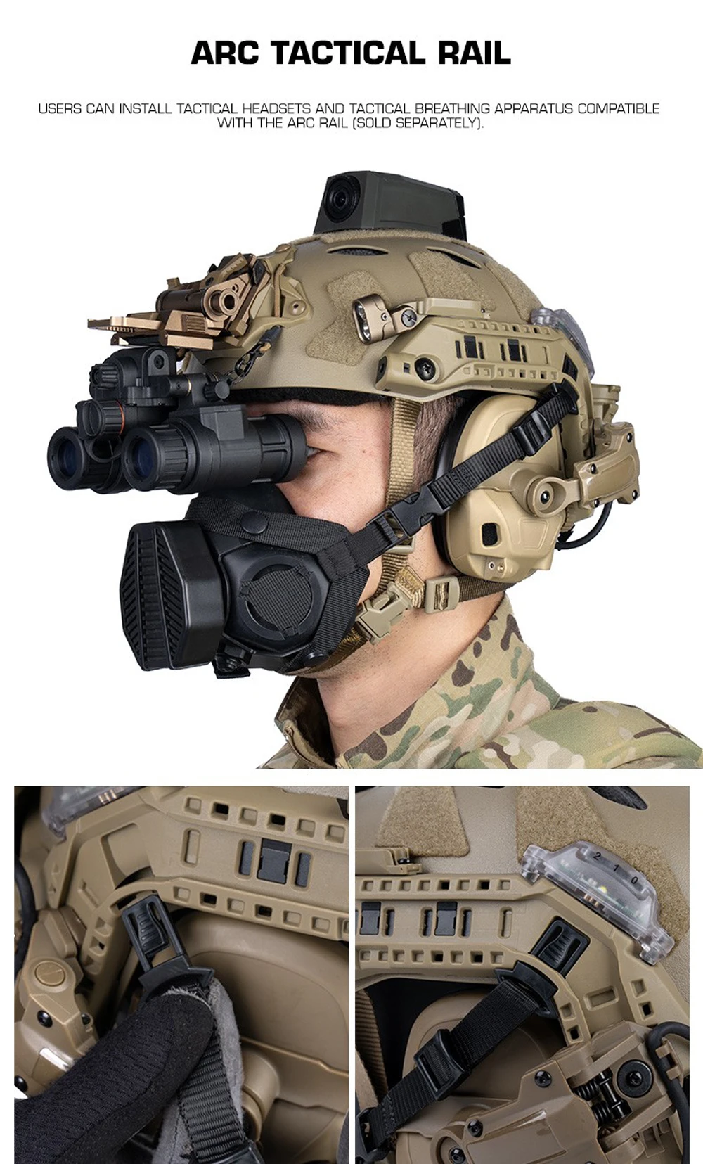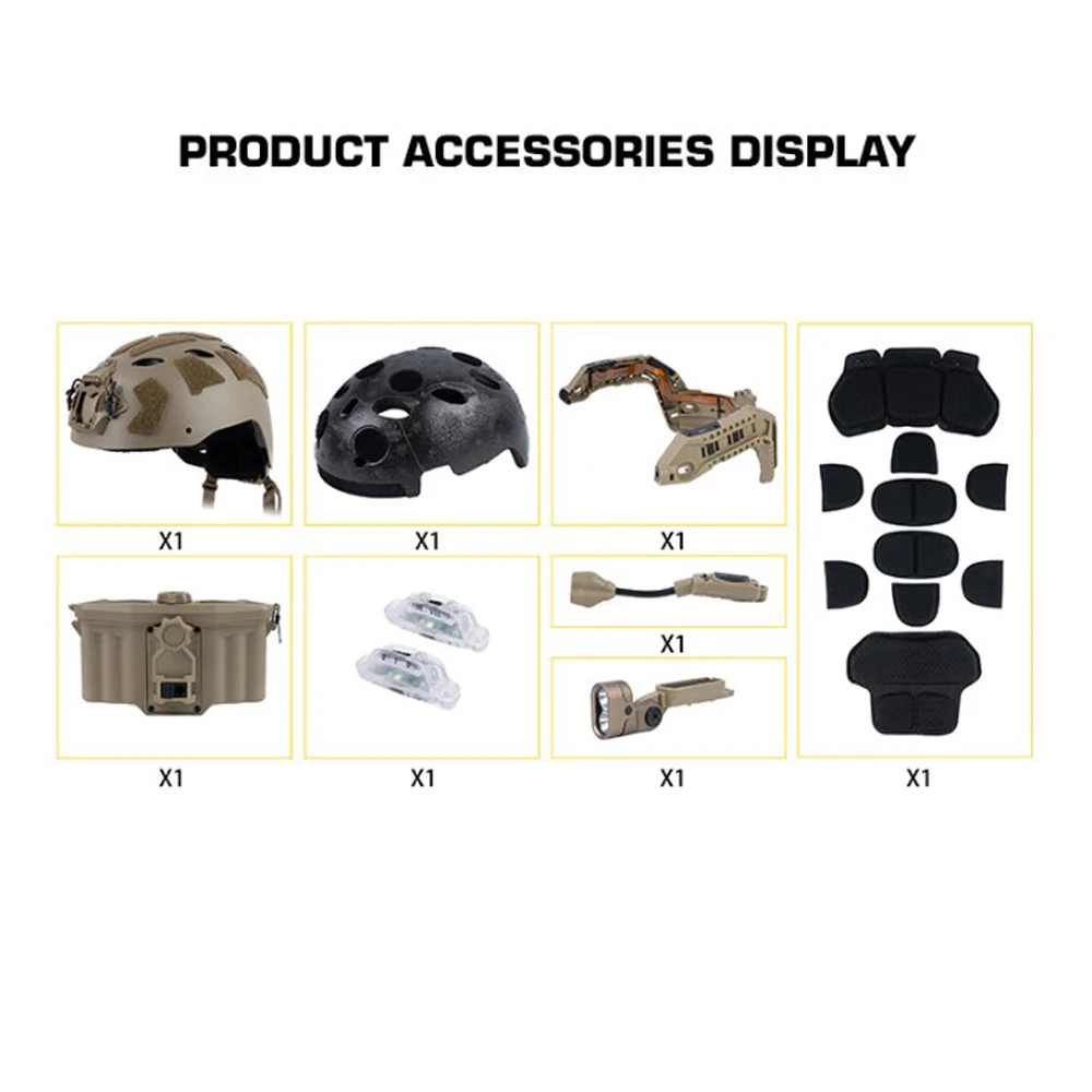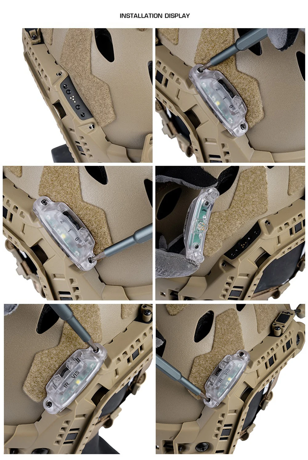 Versión de lámpara completa para casco táctico con sistema de alimentación de riel ARC modular de integración, lámpara de identificación IR, linterna LED, luz de señal doble