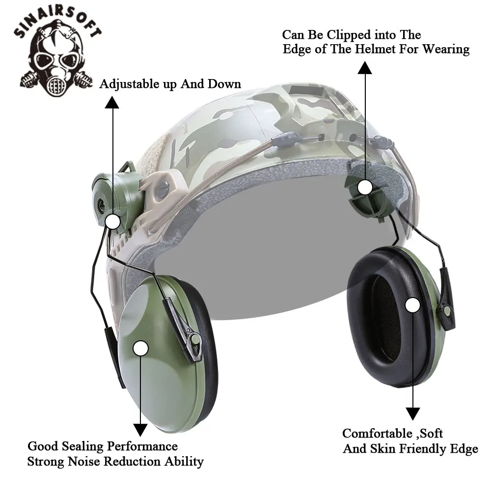 SINAIRSOFT Casco táctico Versión montada Orejeras Tapones para los oídos antiruido Protección auditiva Defensores para los oídos insonorizados Auriculares Caza Tiro Accesorios deportivos