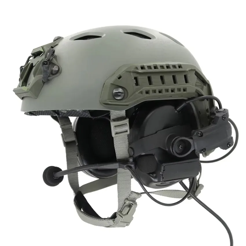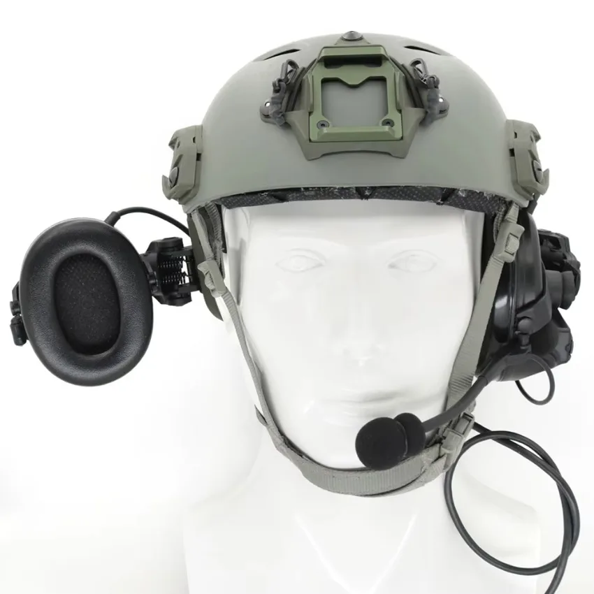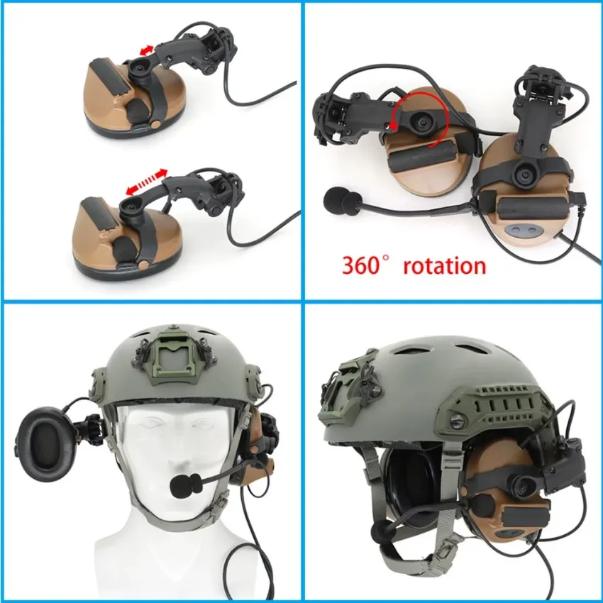 Tipo de casco: a diferencia de los auriculares de airsoft tradicionales, los auriculares para casco se pueden montar directamente en el casco. Puede instalar libremente accesorios, como luces, cámaras, etc., en la parte superior del riel del casco durante el uso.Cuando no esté en uso, también se puede girar hacia el costado o hacia atrás del casco para simplificar el almacenamiento.