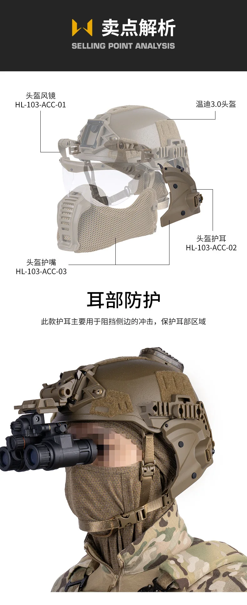 Casco Wendy táctico al aire libre con protección auditiva para bloquear el impacto lateral