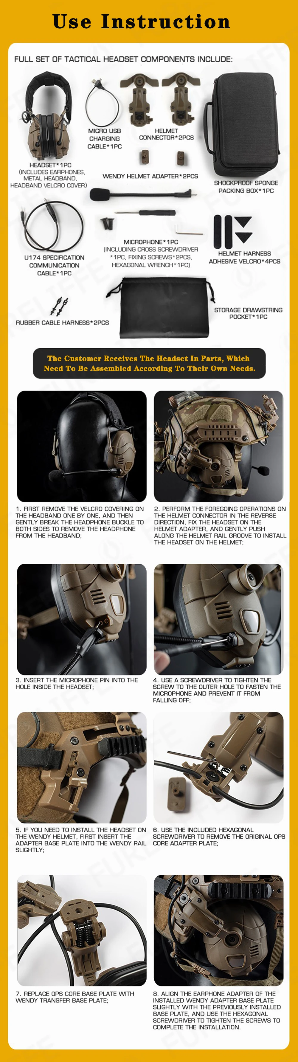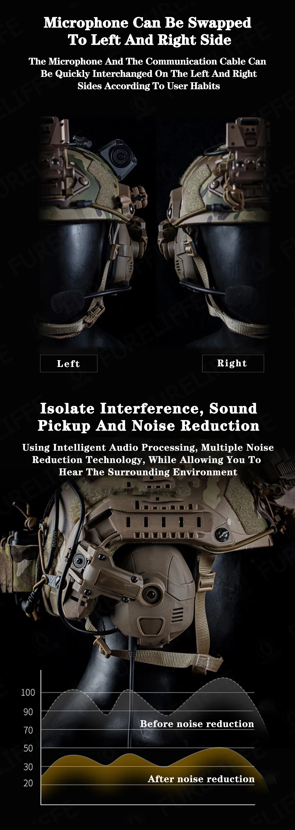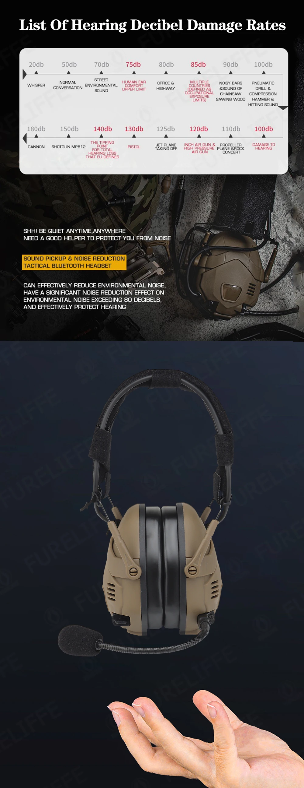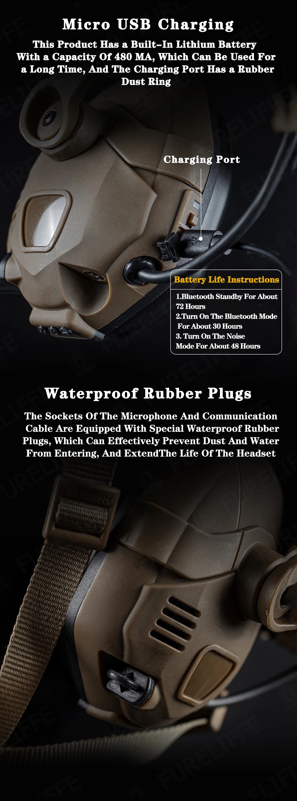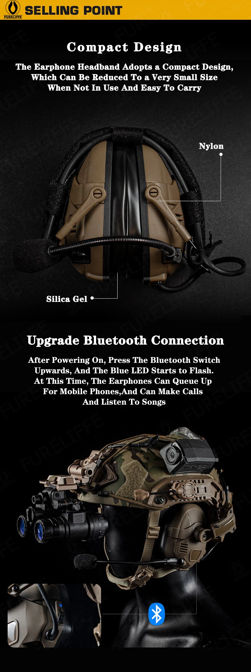 Diseño liviano y plegable para llevar con facilidad, auriculares portátiles de liberación rápida para casco de doble propósito.Actualice la conexión Bluetooth, utilizando procesamiento de audio inteligente, tecnología de reducción de ruido múltiple, mientras le permite escuchar el entorno circundante, ofreciendo comodidad y excelente cancelación de ruido, proteja eficazmente su audición.