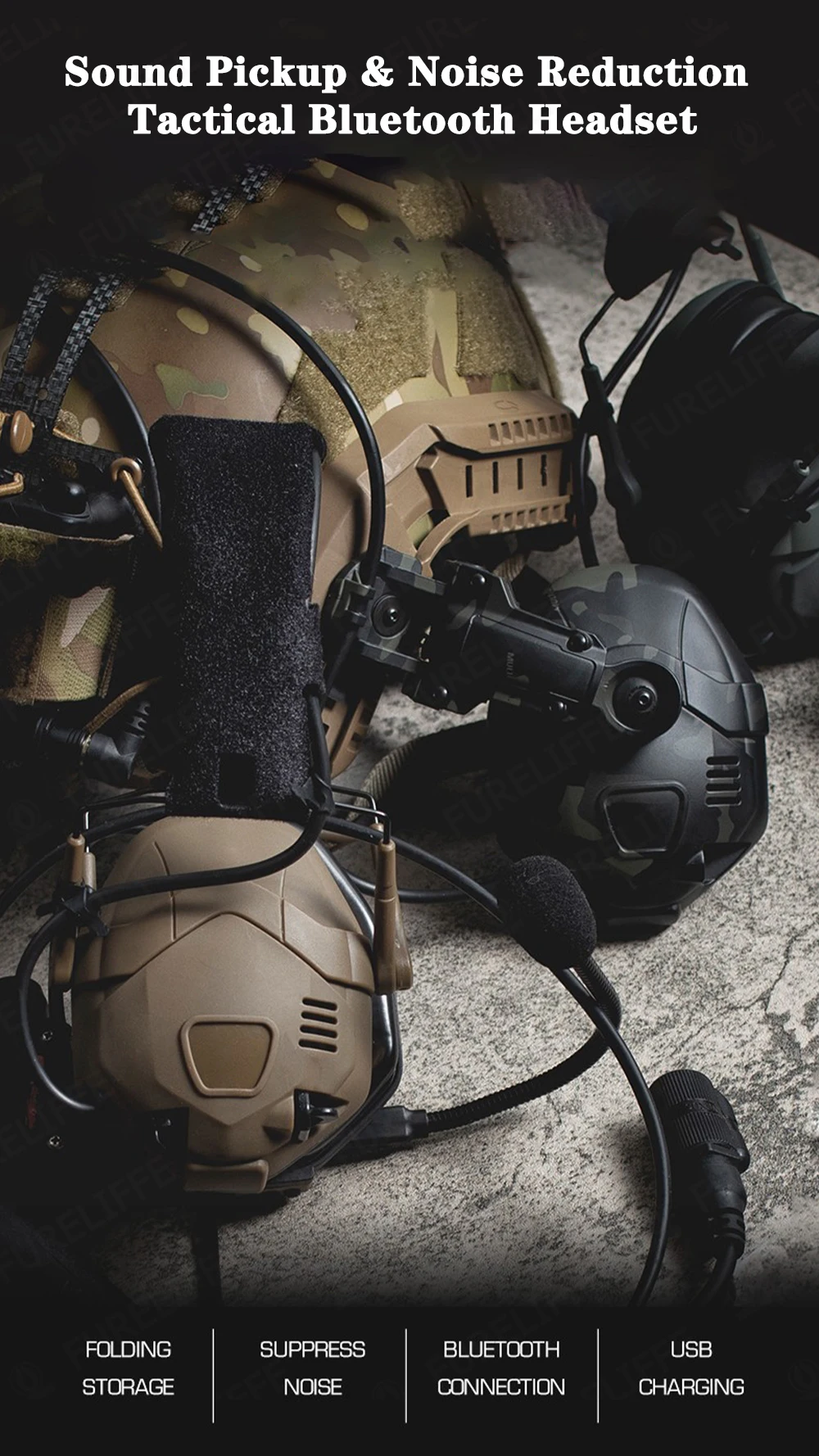 Auriculares tácticos Bluetooth con captación de sonido y reducción de ruido
