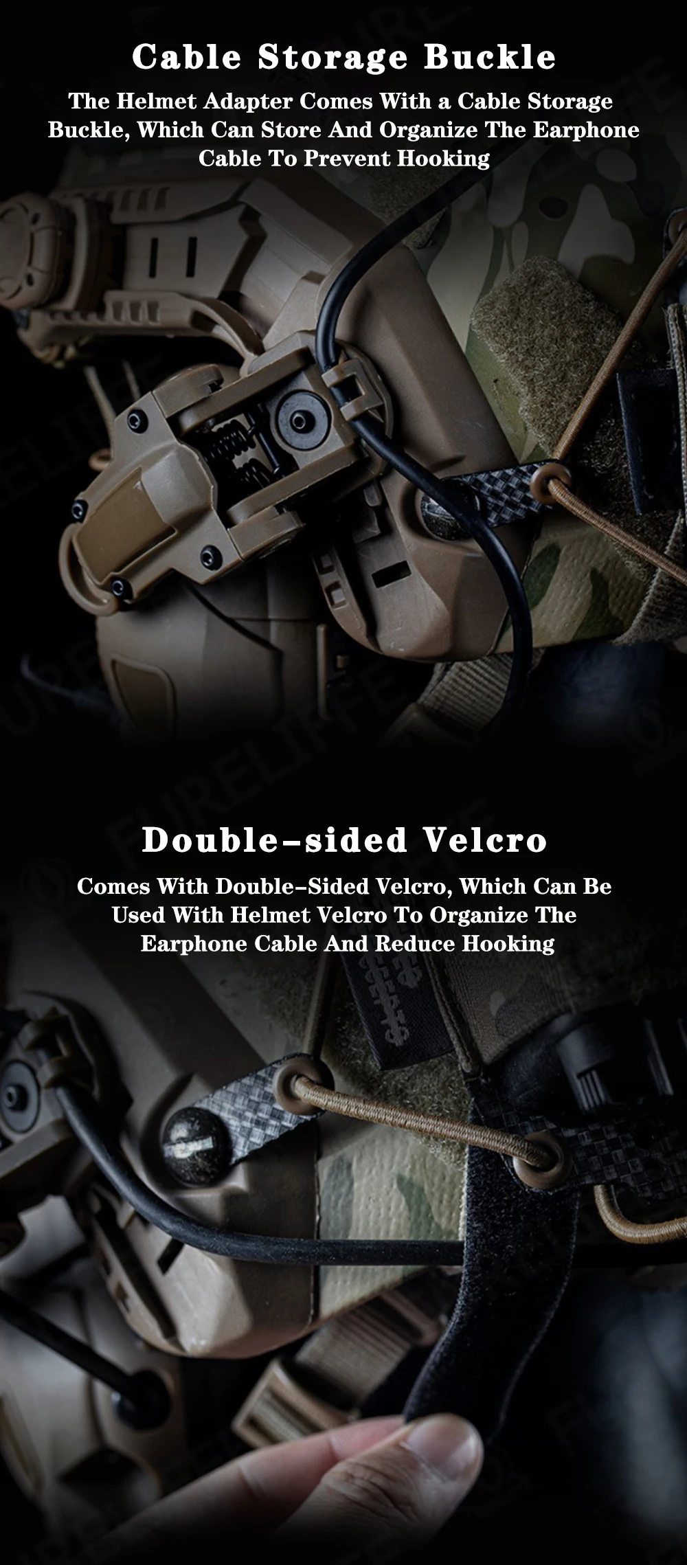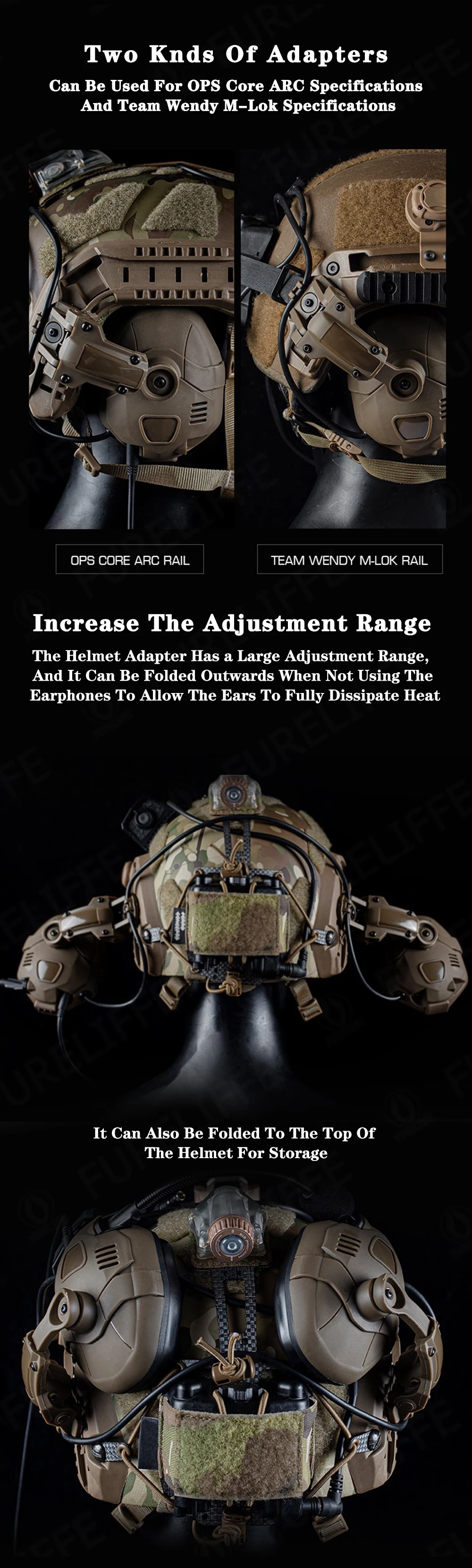 -Brazo adaptador de casco, amplio rango de ajuste, sin usar los auriculares, se puede plegar hacia afuera para que las orejas se disipen completamente del calor y también se puedan plegar hasta la parte superior del almacenamiento del casco.