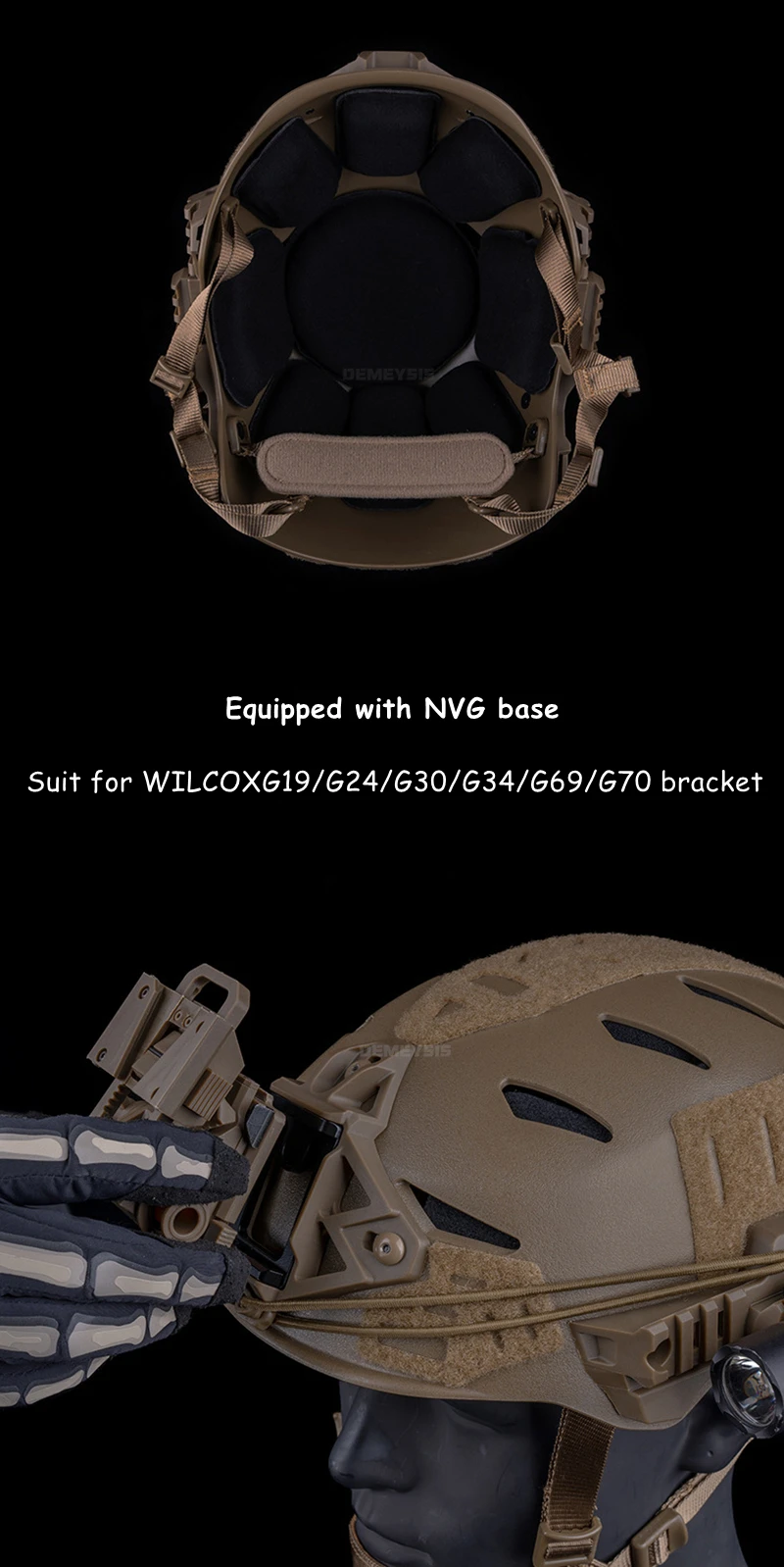 ●Equipado con base NVG y rieles multifuncionales 3.0.Diseño ligero de gancho y bucle.