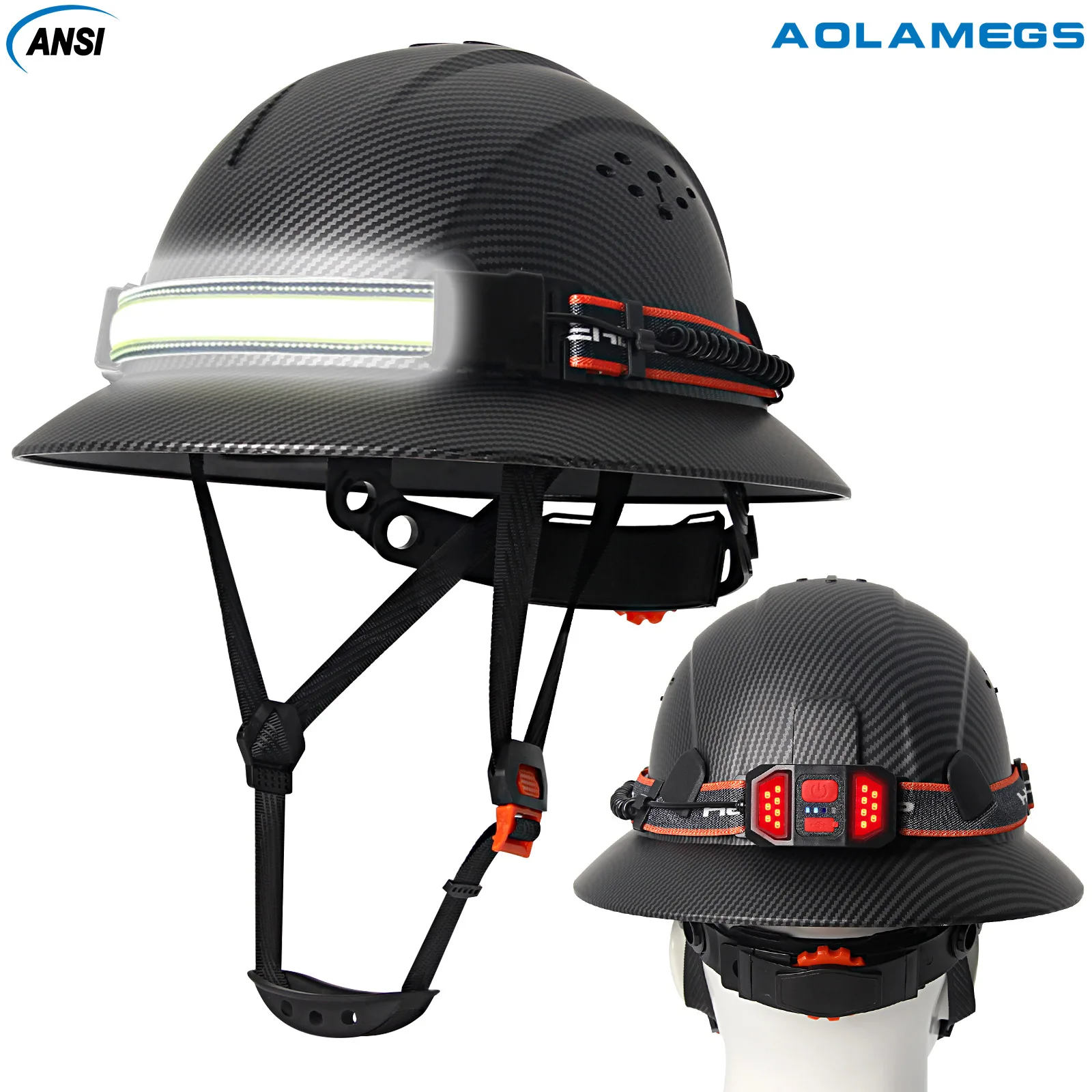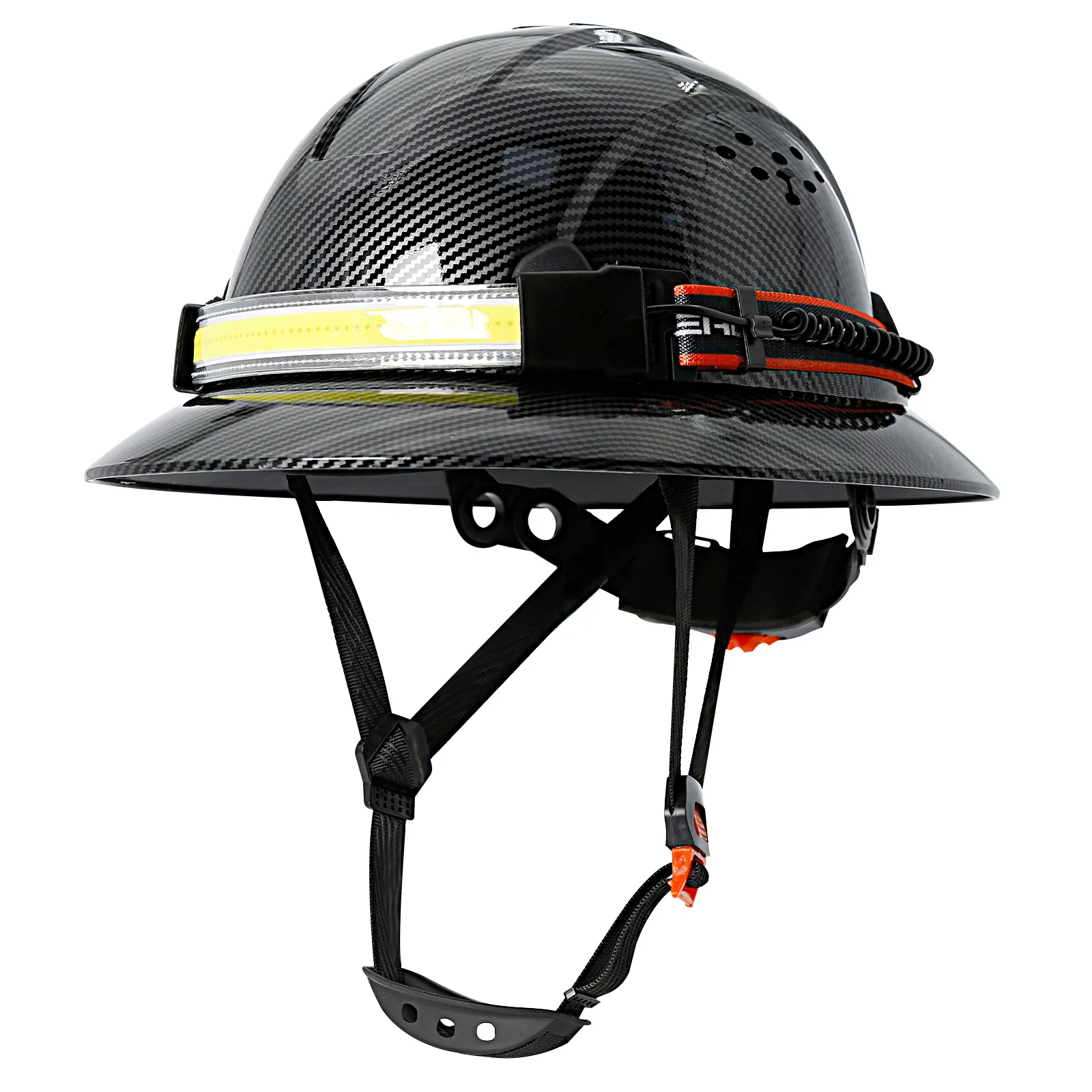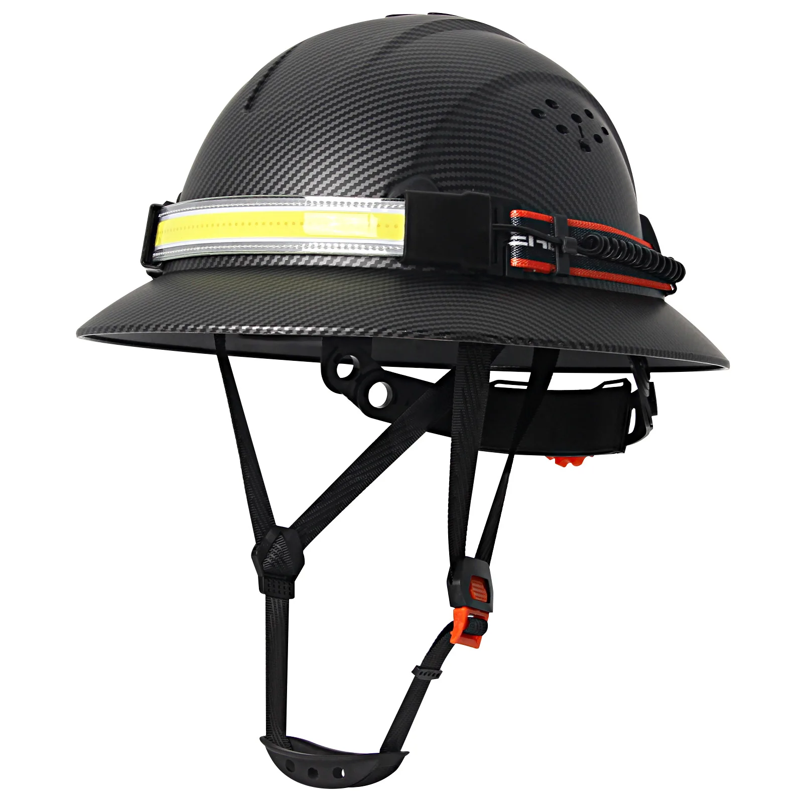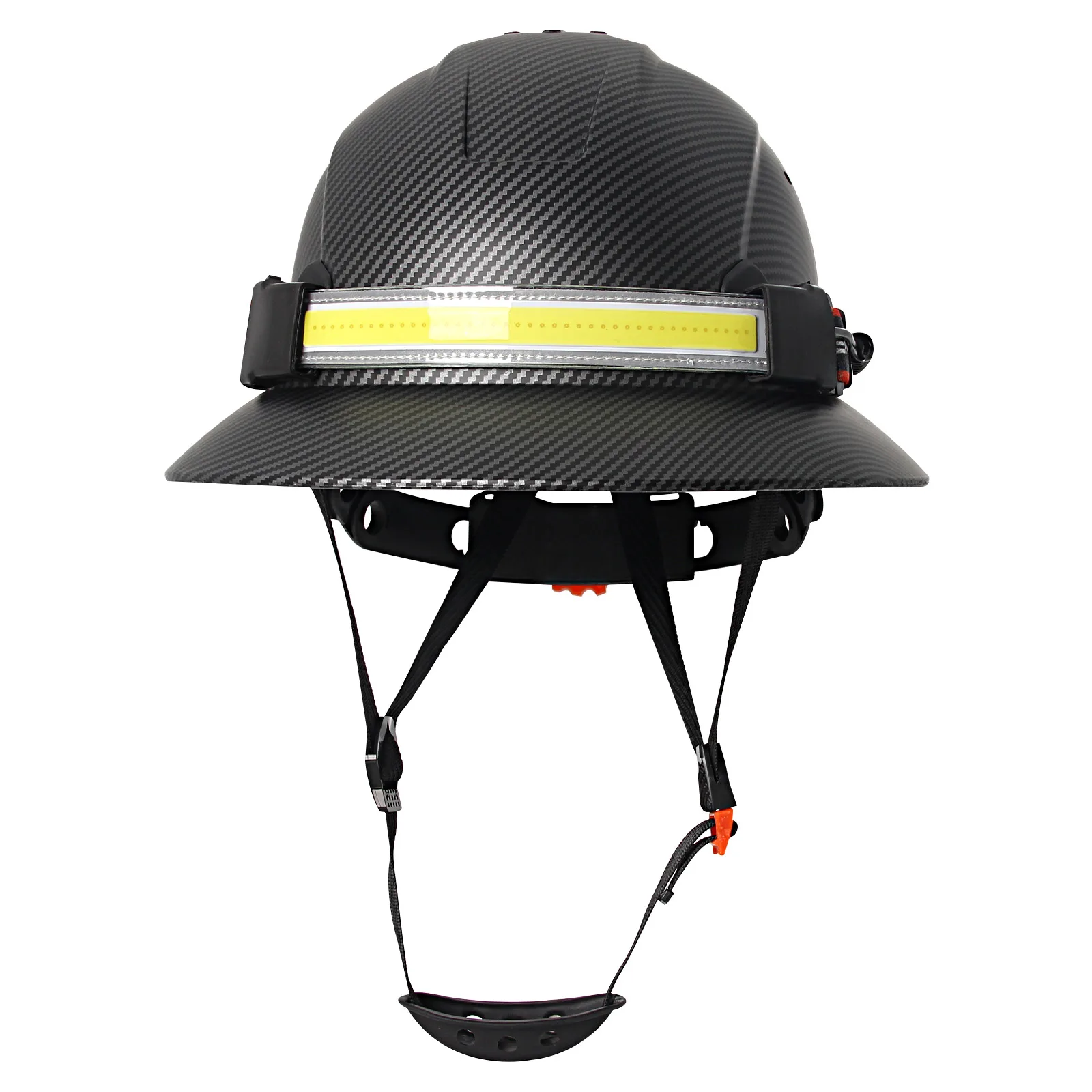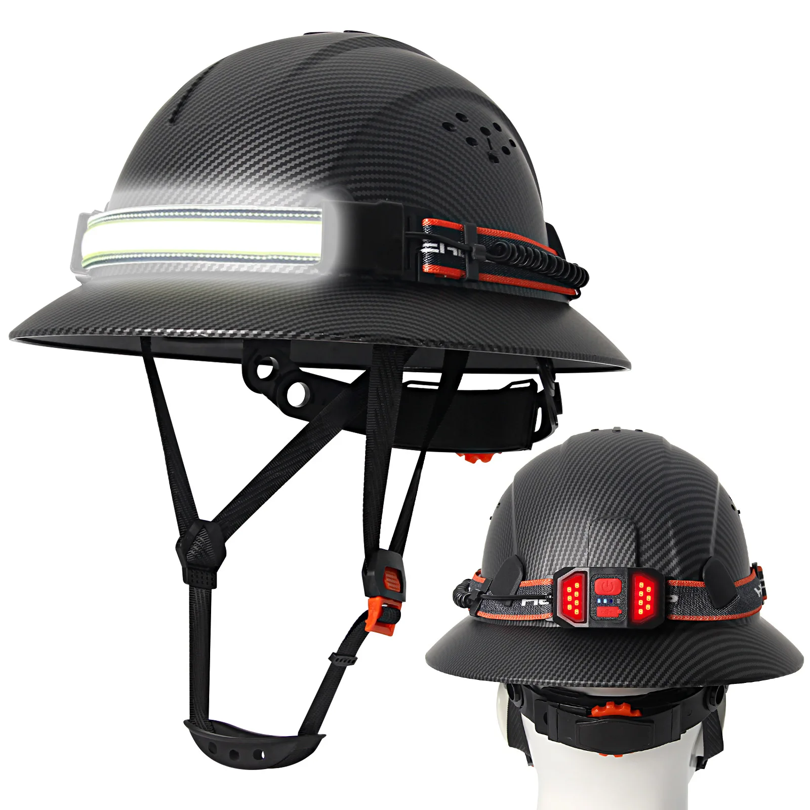 Cascos de seguridad de ala completa CE con lámpara de cabeza Led y luz trasera anticolisión casco de ingeniero de construcción gorra de trabajo transpirable