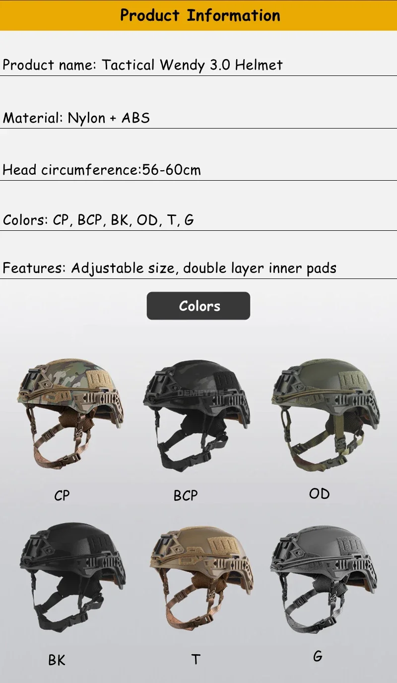 ●Nombre del producto: Casco táctico Wendy 3.0
