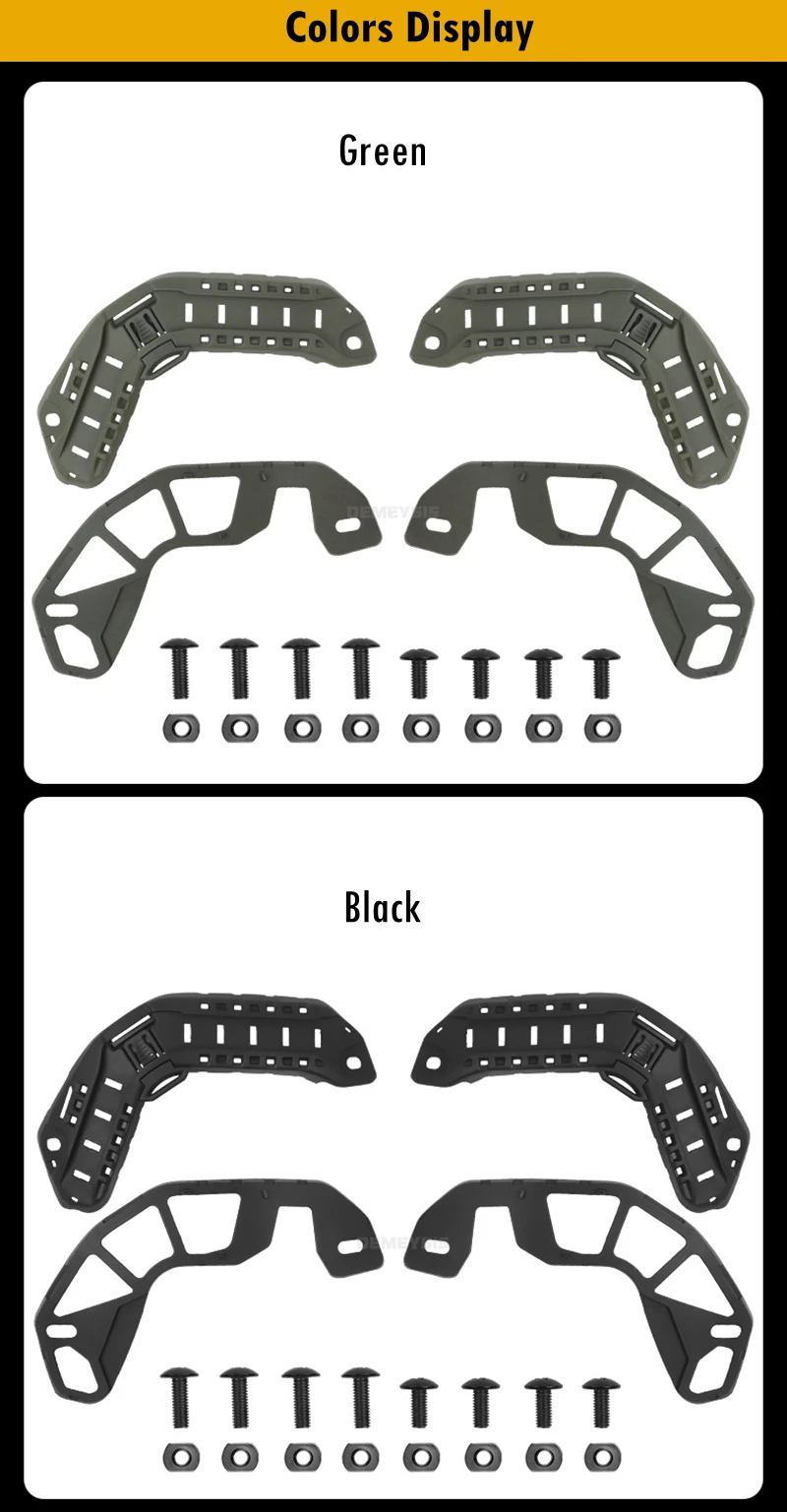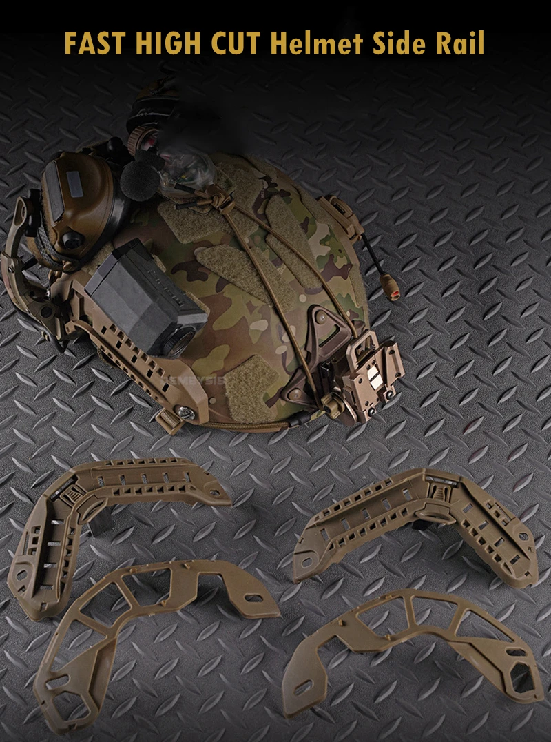 ●Rieles laterales para casco táctico.Puede adaptar otros equipos como máscaras, auriculares y luces para cascos, etc.
