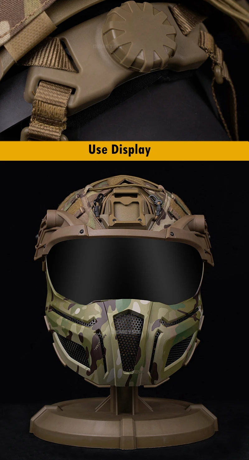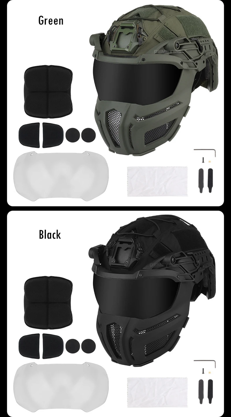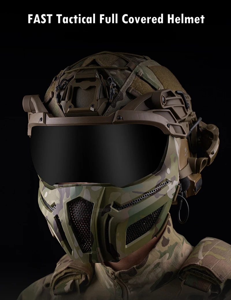 Cascos tácticos totalmente cubiertos de 2 lentes, casco para deportes de caza y tiro al aire libre, conjunto de máscara, cubierta ajustable para casco de combate Airsoft